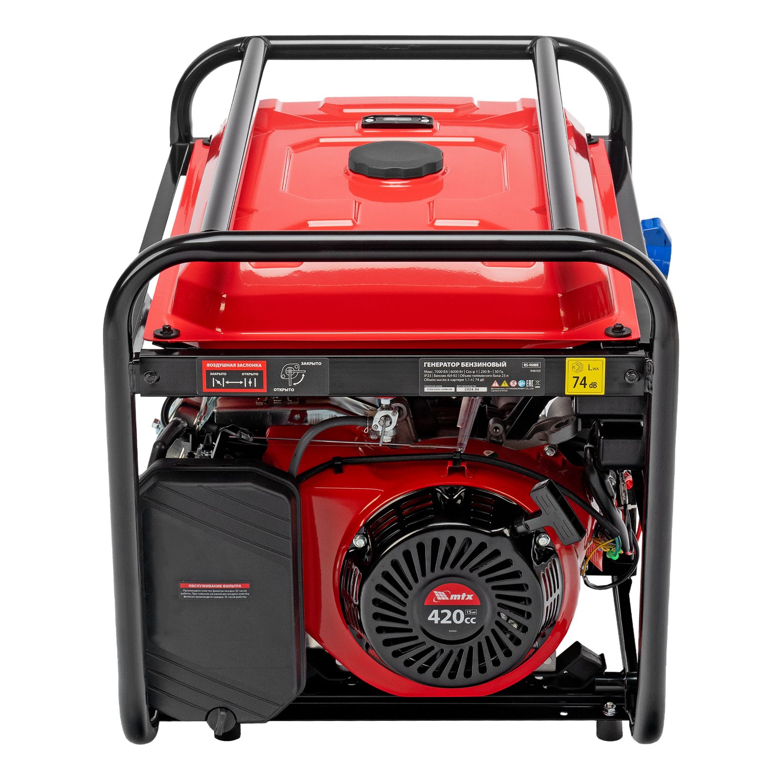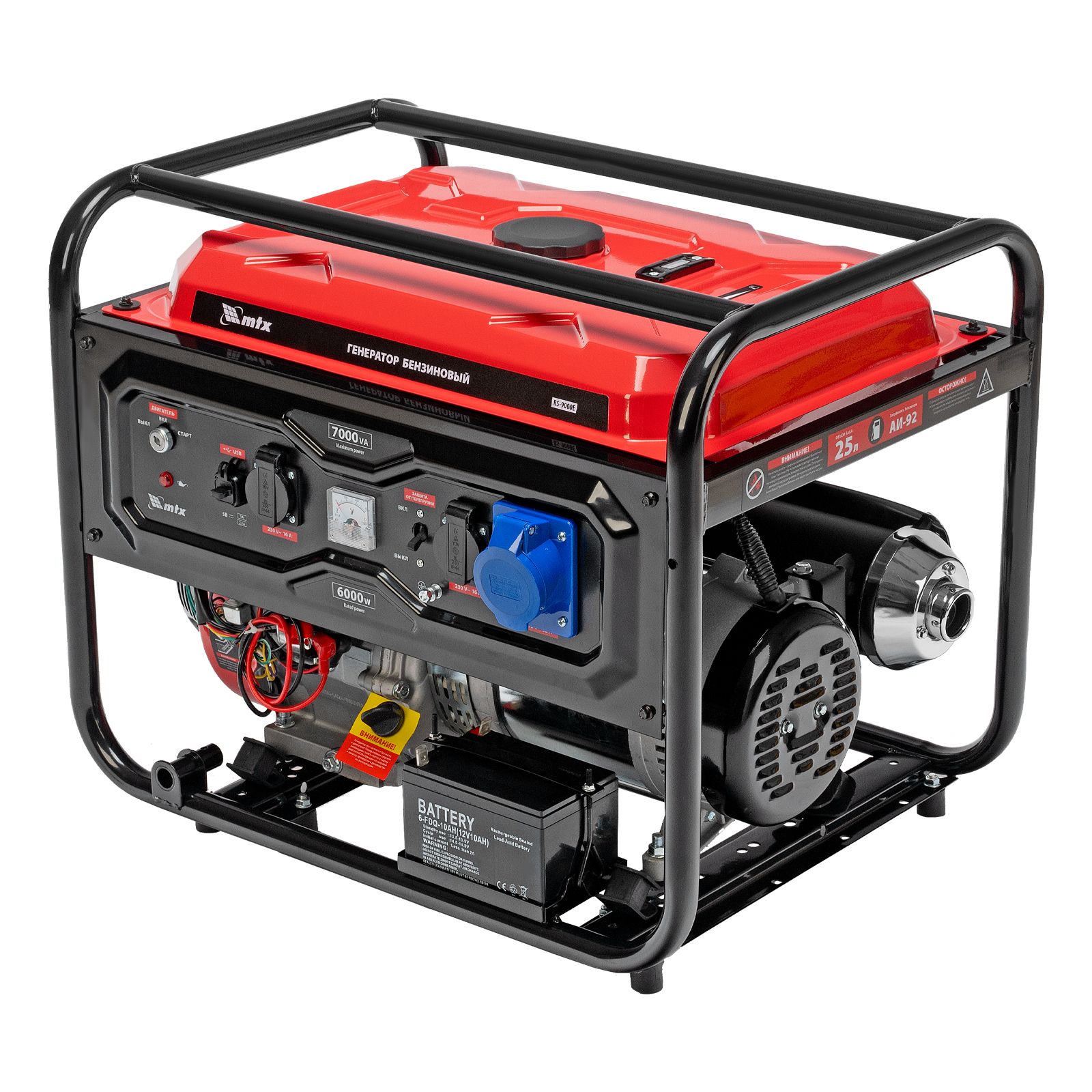 Бензиновый генератор MTX RS-9000E 946165 максимальной мощностью 7 кВт, с электростартером, поддерживает напряжение 230 В и обеспечивает функционирование бытовой техники, электроинструмента, осветительных приборов и других потребителей в случае отсутствия электросети или перебоев в ее работе. Стабилизатор напряжения AVR защищает чувствительные приборы от поломки. Для подключения потребителей служат 2 розетки 230 В/16 А, для питания мощной техники предназначена силовая розетка 230 В/32 А. На панели управления также предусмотрен выход постоянного тока USB/TYPE-C 5 В, позволяющий заряжать смартфоны, планшеты и другие гаджеты. Генератор пригодится владельцам загородных участков.