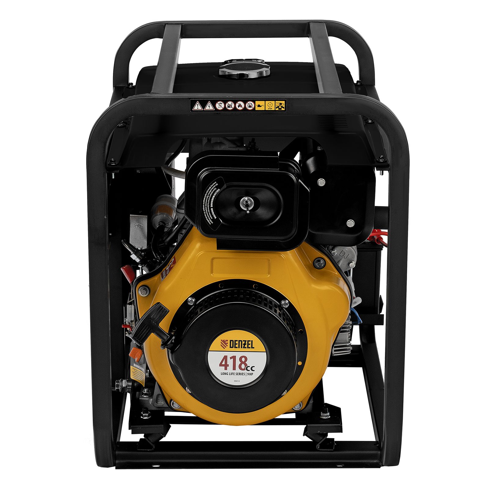 - Мобильность — к генератору можно приобрести транспортировочный комплект Denzel 94906 для перемещения по рабочей площадке.