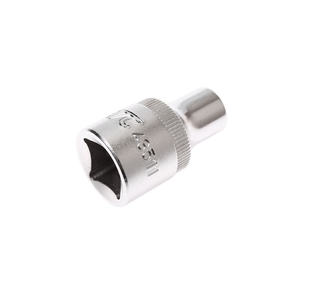 Головка торцевая размером 1/2” с насечкой TORX E11, изготовленная из закаленной хром-ванадиевой стали, обеспечивает высокую прочность и долговечность. Данная головка идеально подходит для работы с болтами и винтами, имеющими TORX-форму, что позволяет значительно повысить эффективность закручивания и откручивания.