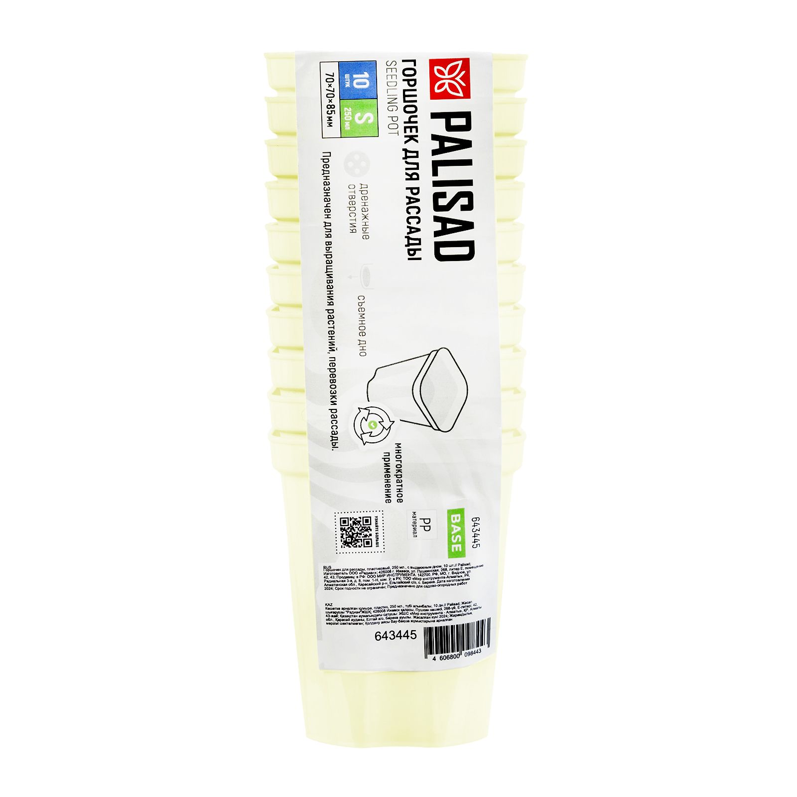 Пластиковый горшочек Palisad 643445 объемом 250 мл и размером 70 х 70 х 85 мм, с выдвижным дном, 10 штук в упаковке, предназначен для выращивания рассады и ее транспортировки к месту пересадки. Позволяет обеспечить идеальные условия содержания для тепло- и влаголюбивых растений.