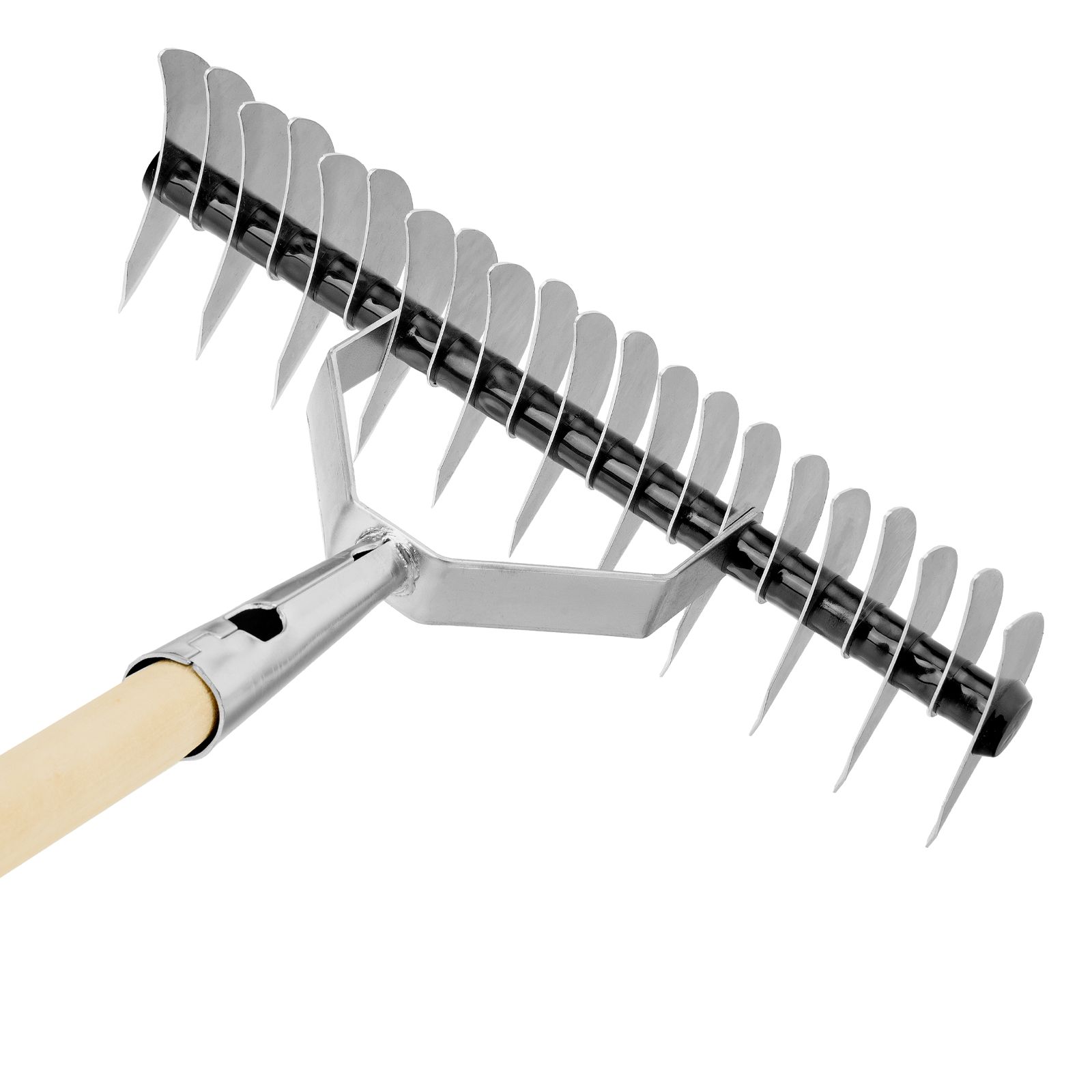 Грабли двусторонние аэраторные, стальные, зубъя 11/21шт, 340 мм, деревянный черенок, BASE Palisad