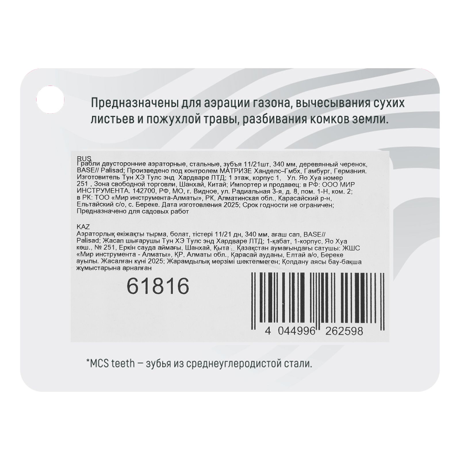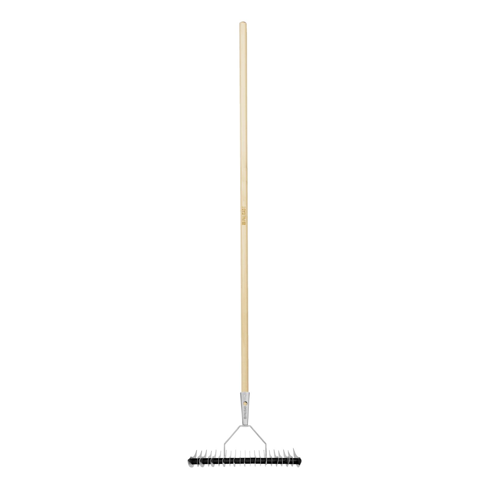—Грабли двусторонние аэраторные, стальные, зубъя 11/21шт, 340 мм, деревянный черенок, BASE Palisad