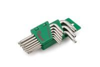 Набор ключей Hans TORX TH10-50 состоит из 9 инструментов, что делает его незаменимым для разнообразных задач, связанных с крепежом. Комплектация включает ключи с профилем Torx с отверстием: TH10, TH15, TH20, TH25, TH27, 536.1, TH30, TH40, TH45 и TH50. Все ключи выполнены в удобной Г-образной форме, что значительно упрощает процесс монтажа и демонтажа винтов с Torx-профилем.