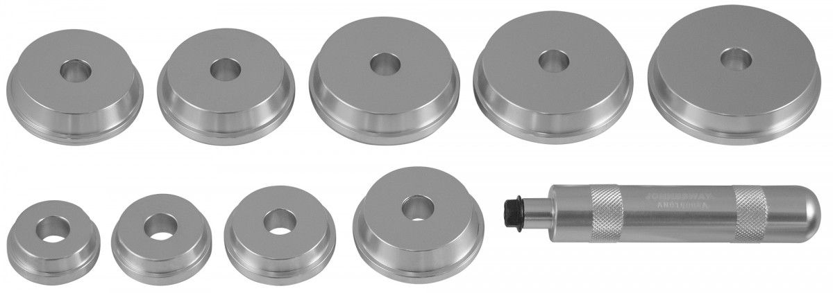 Набор конических оправок с буртом применяется для точной и качественной установки внешних обойм подшипников и сальниковых уплотнений в посадочных отверстиях агрегатов автомобильной техники, таких как двигатель, КПП, ступица и т.п. Все инструменты набора изготовлены из алюминиевого сплава, что позволяет избегать повреждений монтируемых деталей при их установке.