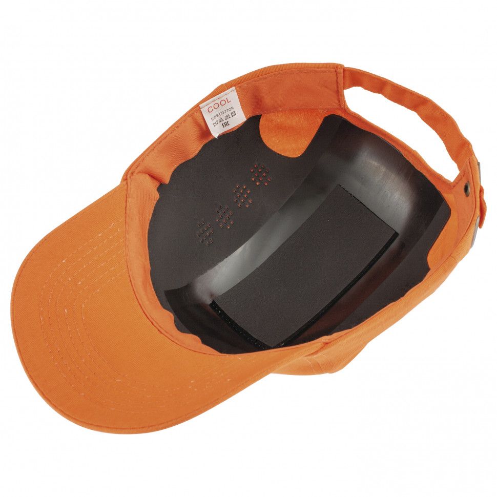 - Износостойкость каскетки и безопасность работника обеспечивают качественные материалы: верхний слой изготовлен из 100% хлопка, а защитная подкладка — из ударопрочного полиэтилена с амортизирующей вставкой из пенополиуретана.