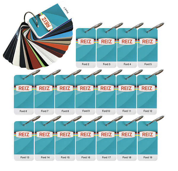 Представляем вашему вниманию Каталог выкрасов автомобильных цветов Set 4, специально разработанный для автомобилей марки FORD. Этот каталог включает в себя тщательно сгруппированные веера, в которых представлены образцы оригинальных цветов на основе базовых компонентов красок REIZ.