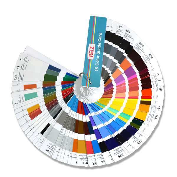 Каталог цветов Shade Color представляет собой удобный инструмент для работы с 1K базовыми красками Reiz. Он включает в себя тщательно подобранные образцы цветов, организованные в виде практичного веера. Каждый лист веера демонстрирует конкретный компонент красок Reiz, что позволяет быстро и легко ориентироваться в цветовой гамме.