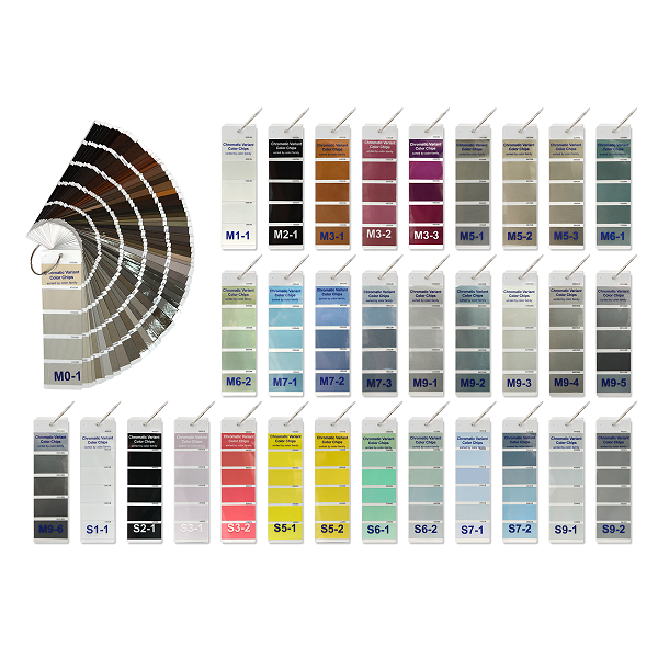 Каталог цветов VARIANT (Chromatic) представляет собой профессиональный инструмент, состоящий из 32 вееров, который включает более 8500 оттенков автомобильных цветов, организованных в строгом хроматическом порядке.