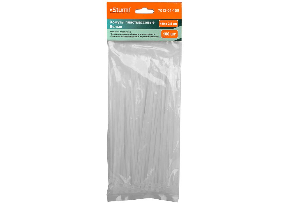 Хомуты пластиковые Sturm! 7012-01-150 являются универсальным крепежным изделием, которое применяется во многих сферах. Основные направления использования: для прокладки проводов, кабелей и их крепления к разным поверхностям и конструкциям; для герметизации соединений; для жесткого и подвижного крепления трубопроводов небольшого диаметра; для крепления легких, например, рекламных конструкций; для упаковки некоторой продукции, в том числе и продуктов питания.