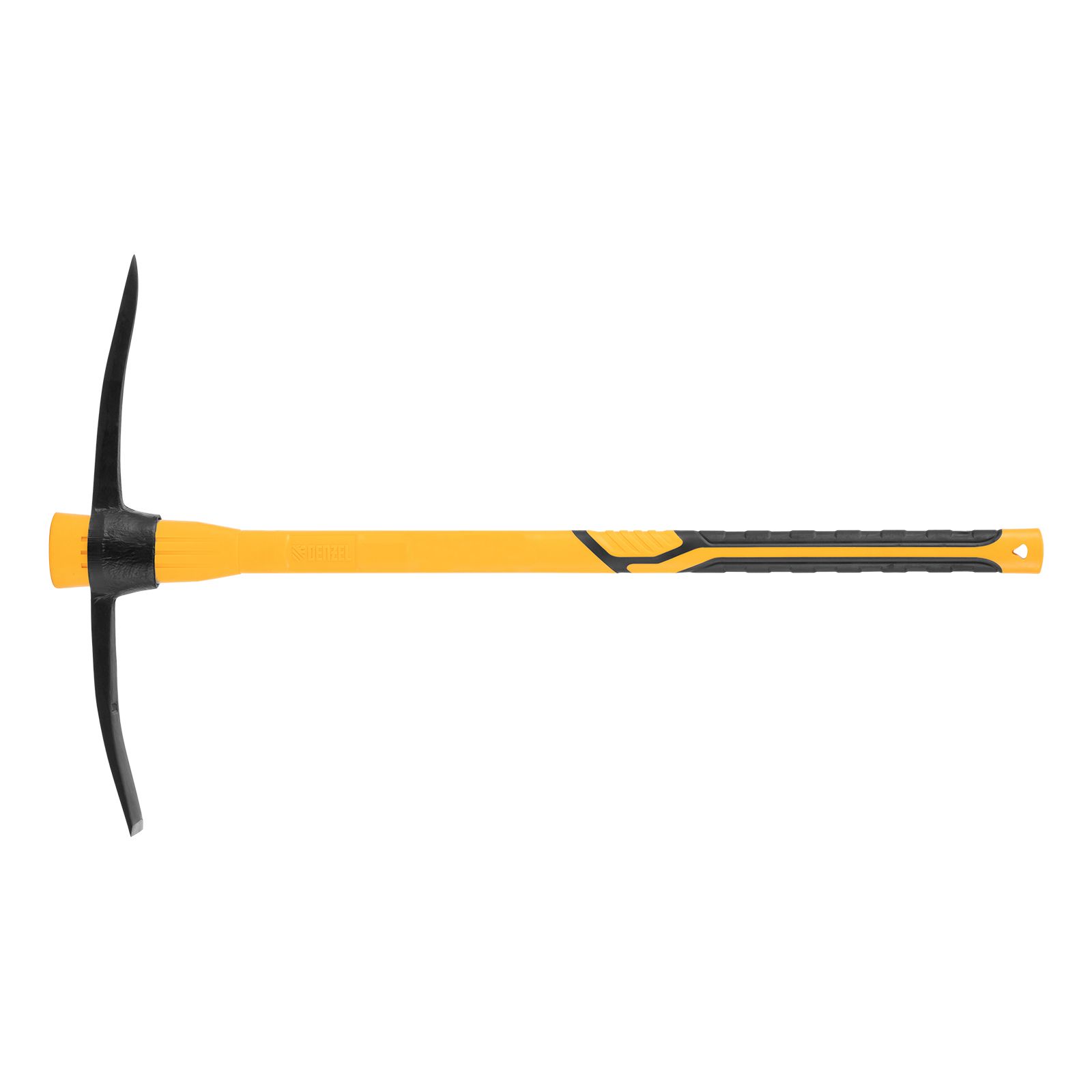 Кирка Denzel 21835 длиной 900 мм, с узкой рабочей частью, головой весом 2000 г и фибергласовой обрезиненной рукояткой, предназначена для работы по камню, рыхления каменистого, пересохшего земляного и глиняного грунта. Может использоваться для разрушения старой кирпичной кладки и колки льда. Инструмент будет полезен на строительной площадке и дачном участке.