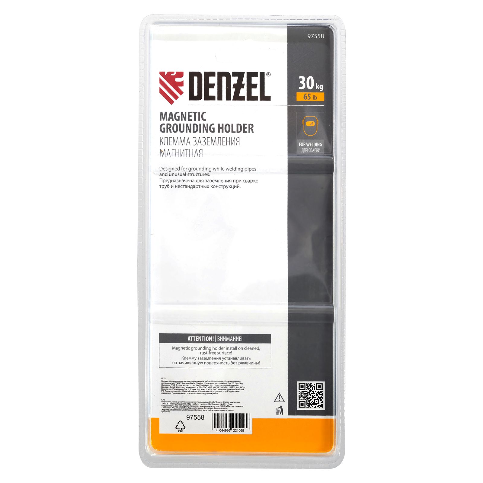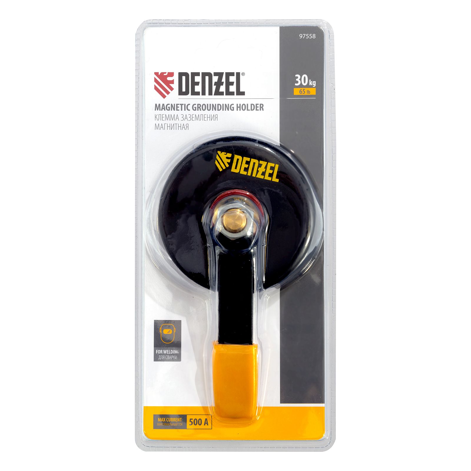 Магнитная клемма Denzel 97558, рассчитанная на усилие 65 LB (30 кг), предназначена для фиксации кабеля заземления на металлической поверхности и используется при проведении сварочных работ. Служит для получения замкнутой электрической цепи, необходимой для процесса ручной дуговой сварки. Позволяет работать со сварочным током до 500 A. Удобна для работы в труднодоступных местах, быстро и надежно крепится как на плоские, так и на изогнутые поверхности.