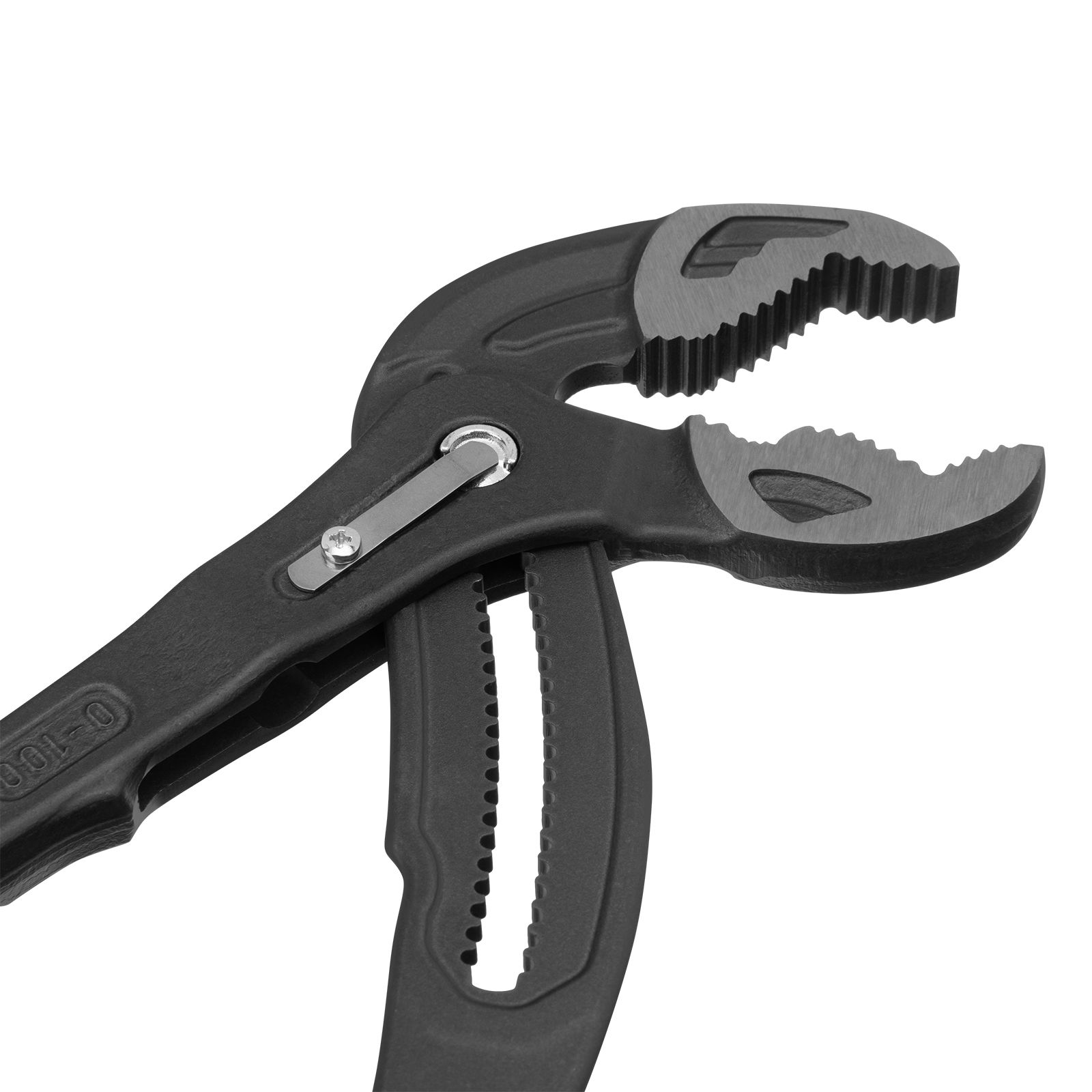 Переставные клещи Gross 15729 длиной 400 мм, с кнопочным механизмом и обливными рукоятками, — профессиональный инструмент для работ с сантехникой, фитингами, трубами и т.д. Рабочие губки с насечками обеспечивают надежный захват изделий диаметром до 95 мм. Клещи удобны для работы в труднодоступных местах.
