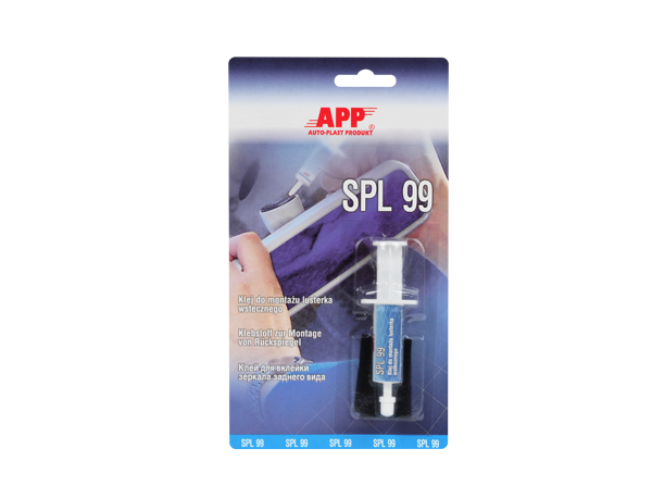Комплект, состоящий из метакрилово-уретанового однокомпонентного клея и каталитической пленки для вклейки зеркала заднего вида к переднему стеклу. Клей также может применяться для крепления держателей боковых стекол. Примененная композиция смол сглаживает разницу в тепловой расширяемости стекла и основания зеркала. Устойчив к температуре от -50°Сдо+150°С.