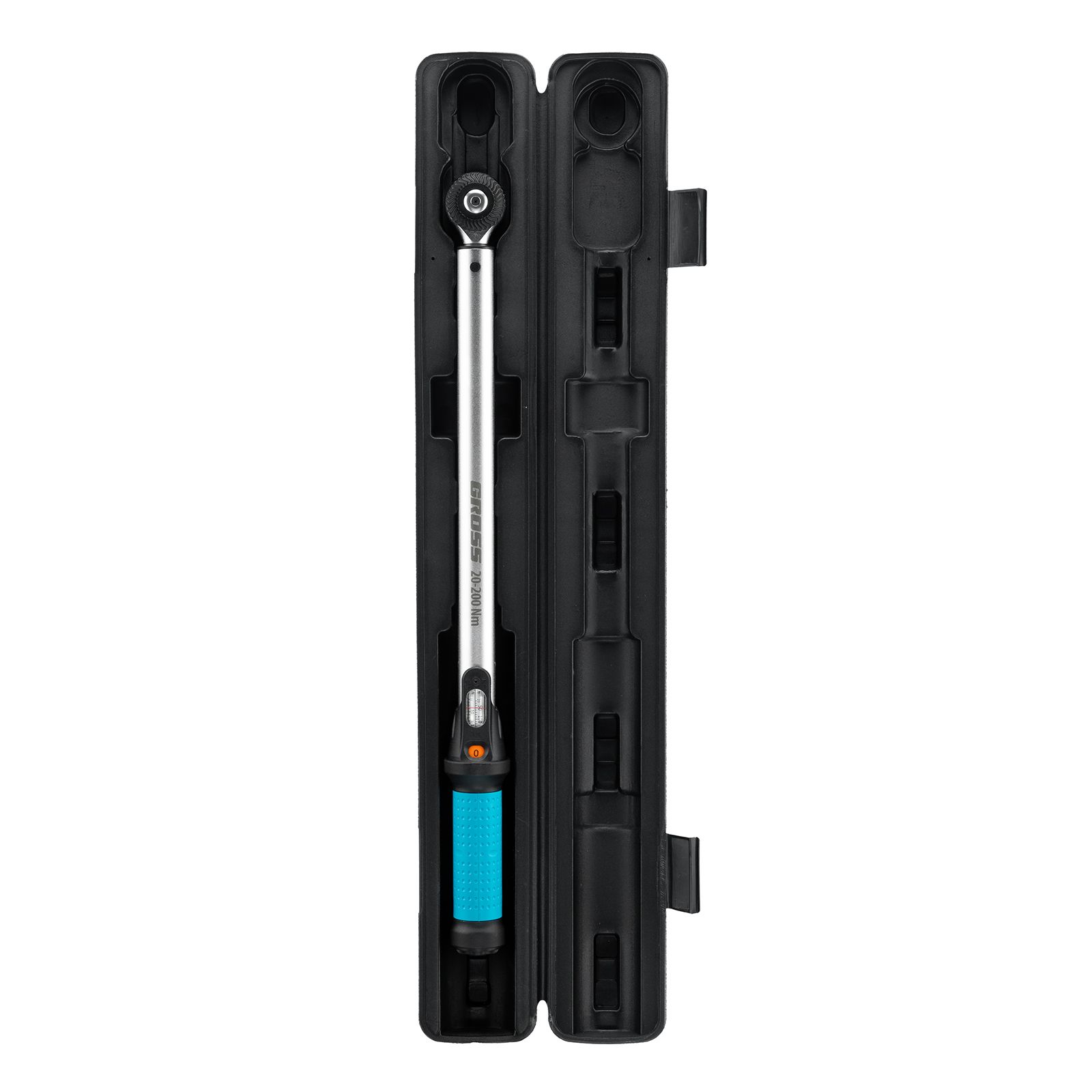 Динамометрический ключ Gross 14181 с посадочным квадратом 1/2", из стали CrV, используется для закручивания резьбового крепежа с точно заданным усилием в диапазоне от 20 до 200 Нм. Оснащен индикатором настройки крутящего момента, обладает повышенной точностью, погрешность составляет +-3%. Момент силы контролируется щелчковым механизмом, что облегчает работу в условиях отсутствия визуального контроля. Инструмент применяется для сборки и ремонта техники, а также для обслуживания автомобилей.