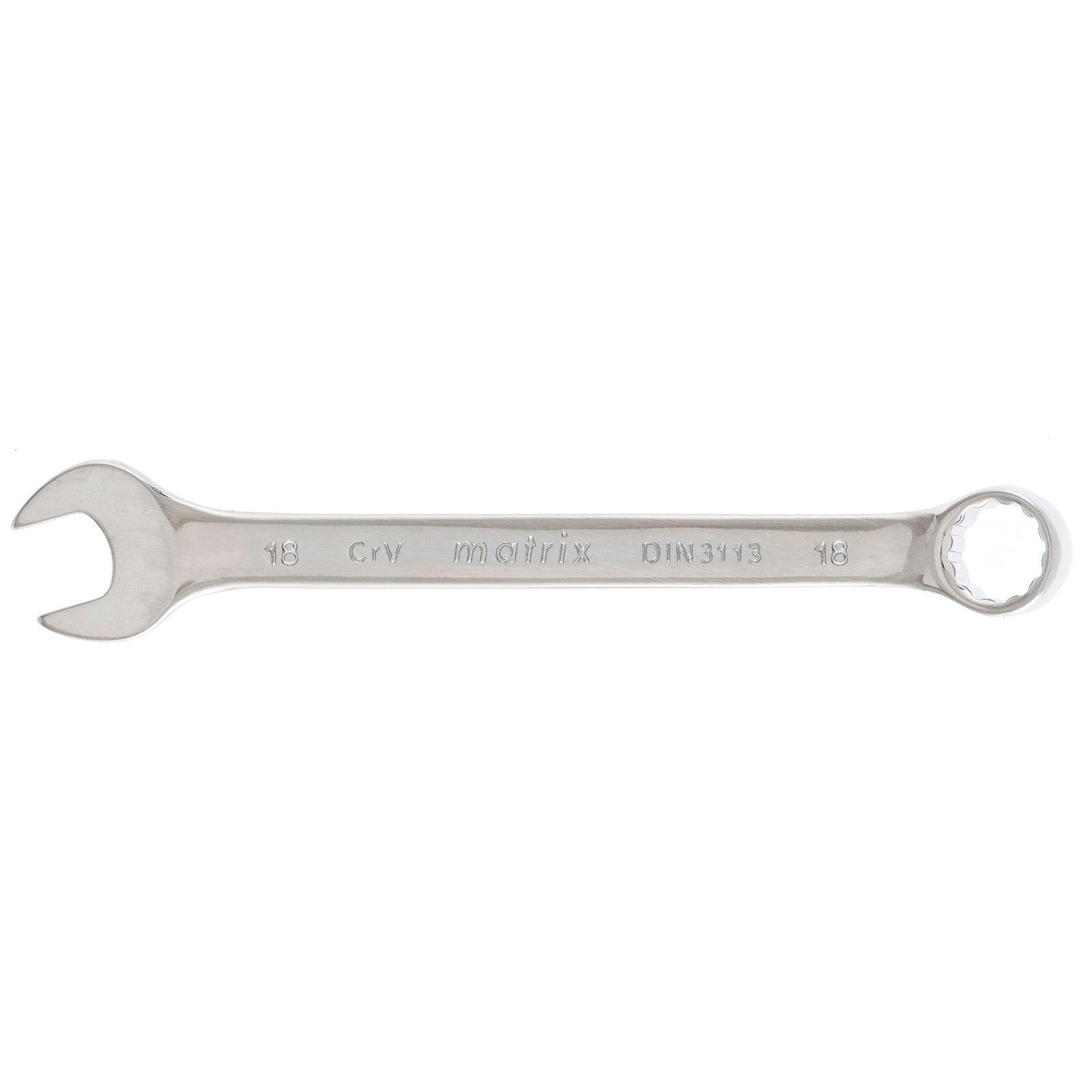 Комбинированный ключ Matrix 15162 размером 18 мм, из стали CrV, с покрытием «полированный хром», пригодится во время ремонтных работ дома или в гараже. С его помощью можно быстро монтировать и демонтировать крепежные элементы. Угол наклона кольцевого зева относительно плоскости инструмента составляет 15°, поэтому ключом удобно работать в труднодоступных местах.