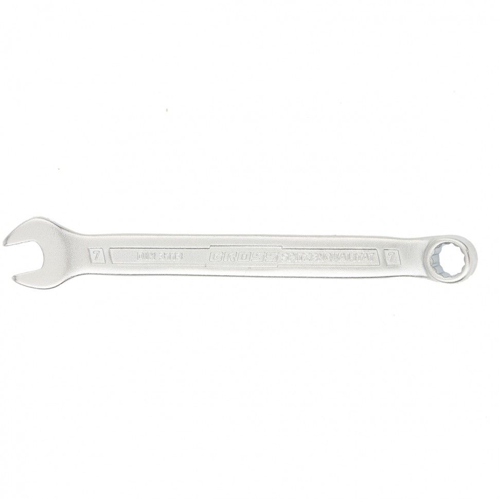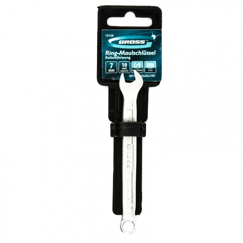 Комбинированный ключ Gross 15126, 7 мм, холодный штамп, — ручной слесарно-монтажный инструмент из стали CrV, позволяющий закручивать и откручивать гаечные и болтовые соединения. Кольцевой зев с 12-гранной рабочей поверхностью крепко удерживает крепеж, не повреждая его. Ключ используется при ремонте автомобилей, сборке техники, будет полезен и в быту.