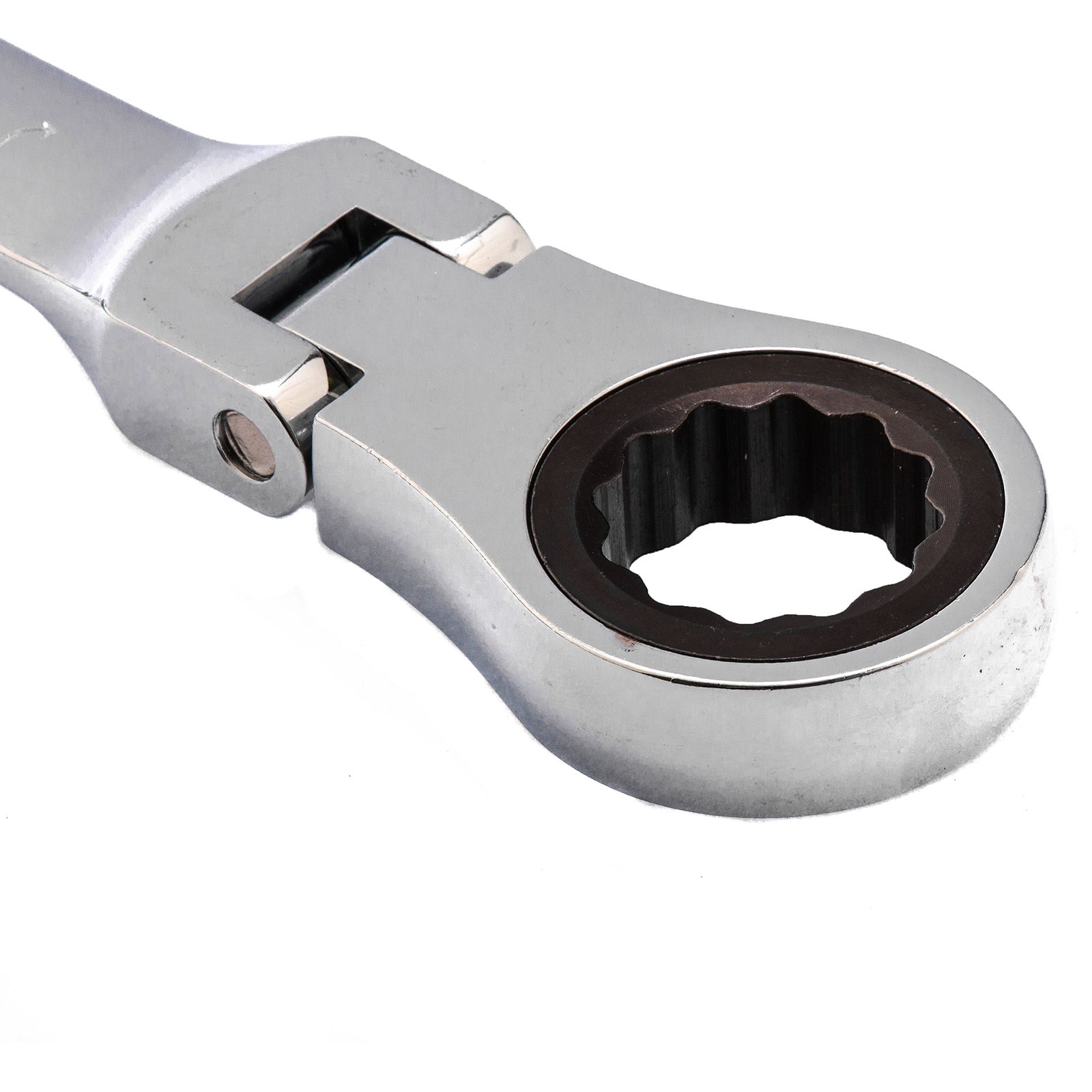 - Удобная работа в труднодоступных местах — храповой механизм на 72 зуба обеспечивает плавное вращение (шаг трещотки составляет 5°), а шарнир позволяет поворачивать рабочую часть под углом.