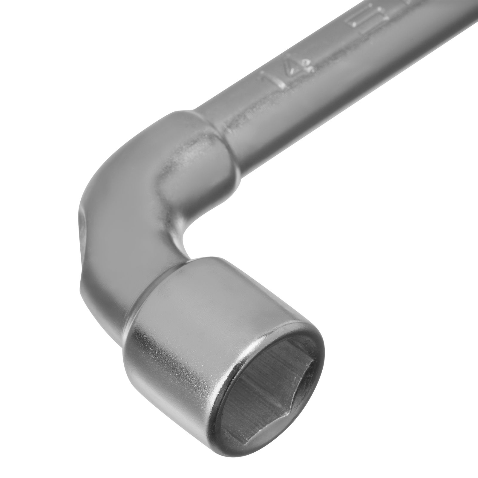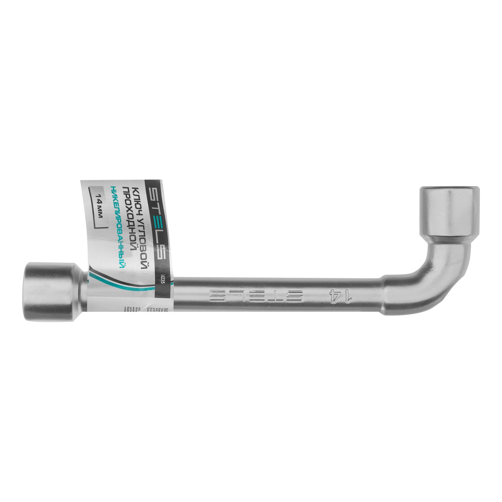 Угловой проходной ключ Stels 14235 размером 14 мм используется для работы в труднодоступных местах, когда обычный рожковый или накидной ключ не достает до крепежа. Будет полезен частным и профессиональным мастерам.
