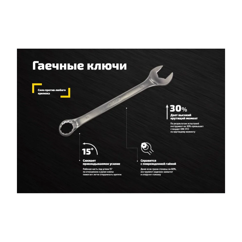 Комбинированный ключ 22 мм Inforce 06-05-22 используется в качестве главного инструмента для работы с шестигранным крепежом. Наличие двух головок, накидной и рожковой, позволяет использовать ключ в различных условиях. Головка наклонена на 15 градусов; Работает со скругленными на 80% болтами; Минимизированное усилие. Выбрать другой размер.