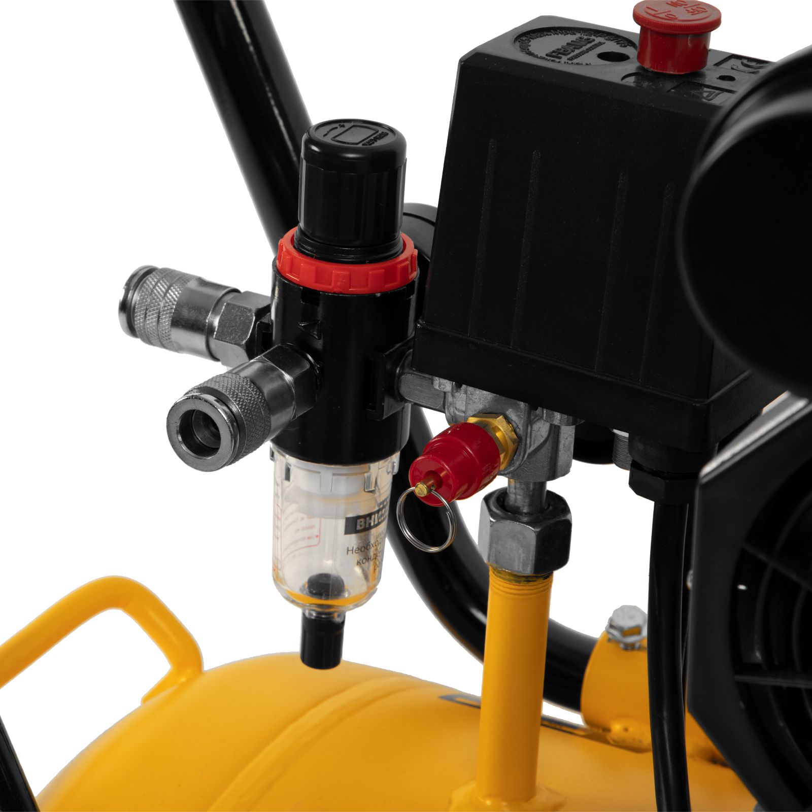 - Контроль давления в ресивере и на выходной магистрали — компрессор оборудован двумя манометрами.