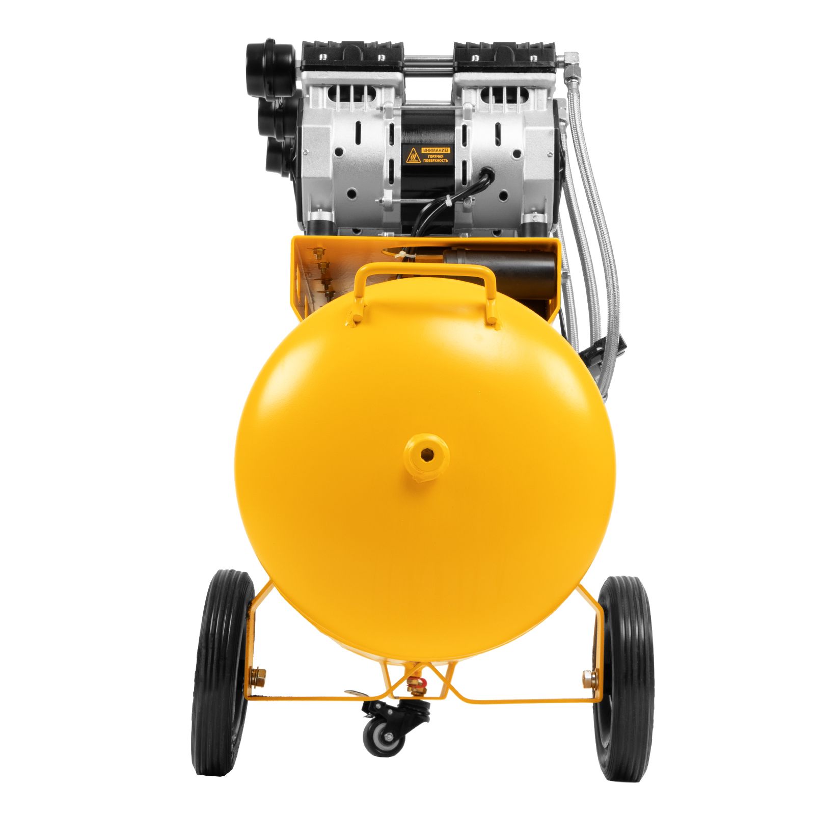 Безмасляный малошумный компрессор Denzel DLS 1800/100 58028 мощностью 1800 (3 х 600) Вт, объемом ресивера 100 л и производительностью 345 л/мин предназначен для обеспечения пневмоинструмента сжатым воздухом, подаваемым под давлением до 8 бар. Позволяет подключить пневматический заклепочник, дрель, шлифмашину и т.д. Оптимален для работы с краскопультом и для продувки электронных компонентов, т. к. в сжатом воздухе отсутствуют частицы масла. Компрессор пригодится в мастерской, гараже, на строительной площадке.