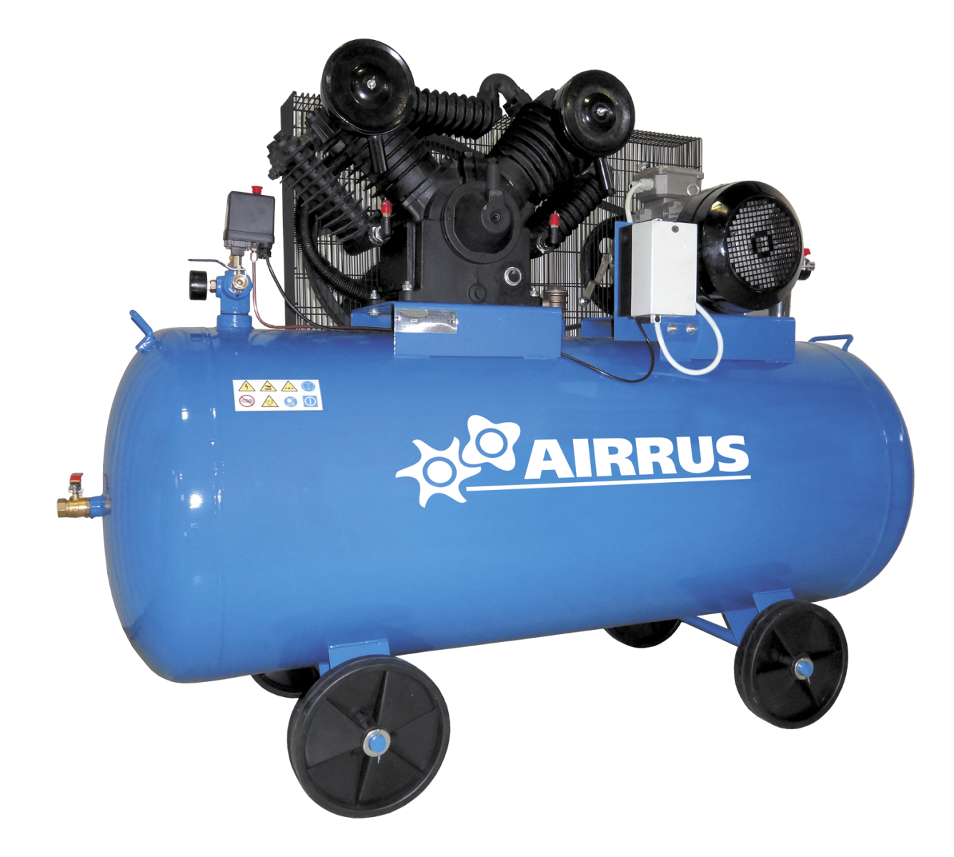 Поршневые компрессоры Airrus Серии V135 - это профессиональные компрессоры с ременным приводом. С использованием V- образного узла насоса, изготовленного из чугуна. Предназначены для работы в тяжелых эксплуатационных условиях. Привод от электродвигателя 380В, имеющий защиту от перегрузки, обрыва фазы и чрезмерно длительного запуска. Оснащенный колесной базой. В комплект входит масловлагоотделитель циклонного типа.