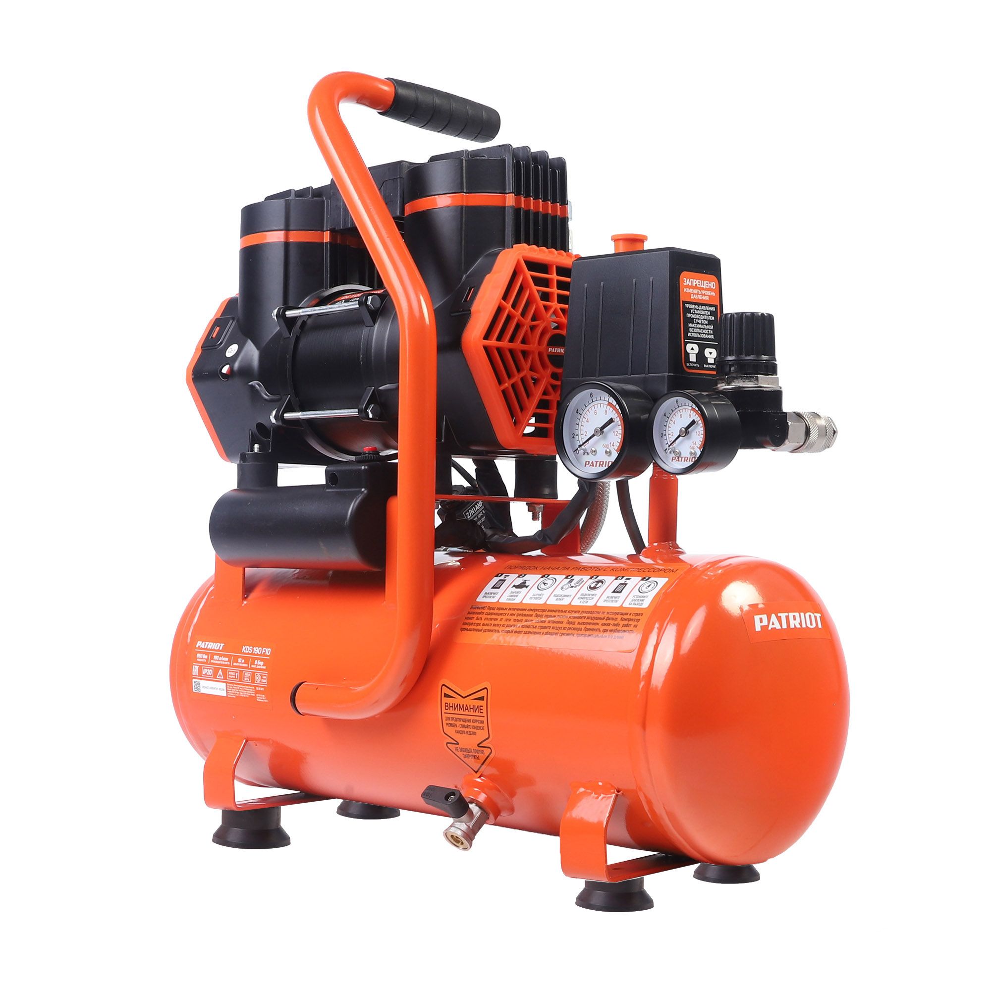 Поршневой безмасляный компрессор PATRIOT KDS 190 F10 (10 литров) для работы с пневмоинструментом. Безмасляный компрессор не требует установки маслоотделителей, подойдет для краскопульта и аэрографа. Подходит для использования в гараже, мастерской, во время ремонта или строительства.