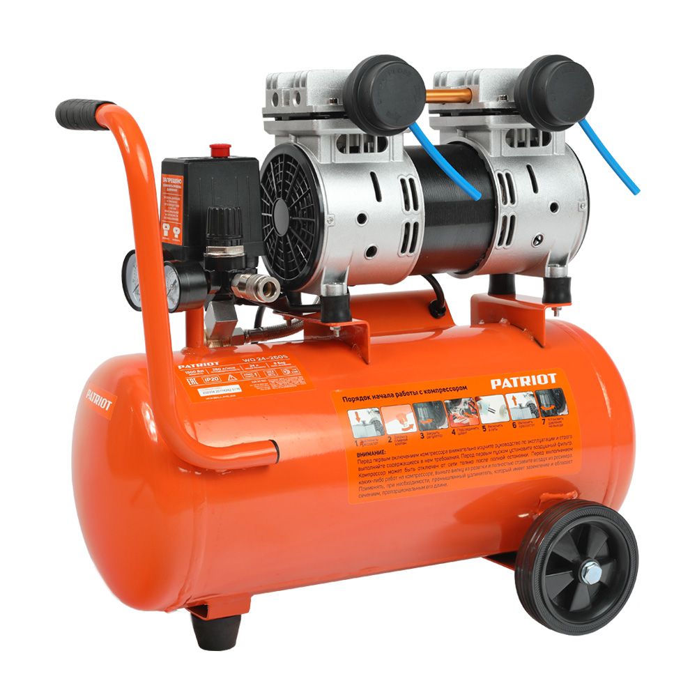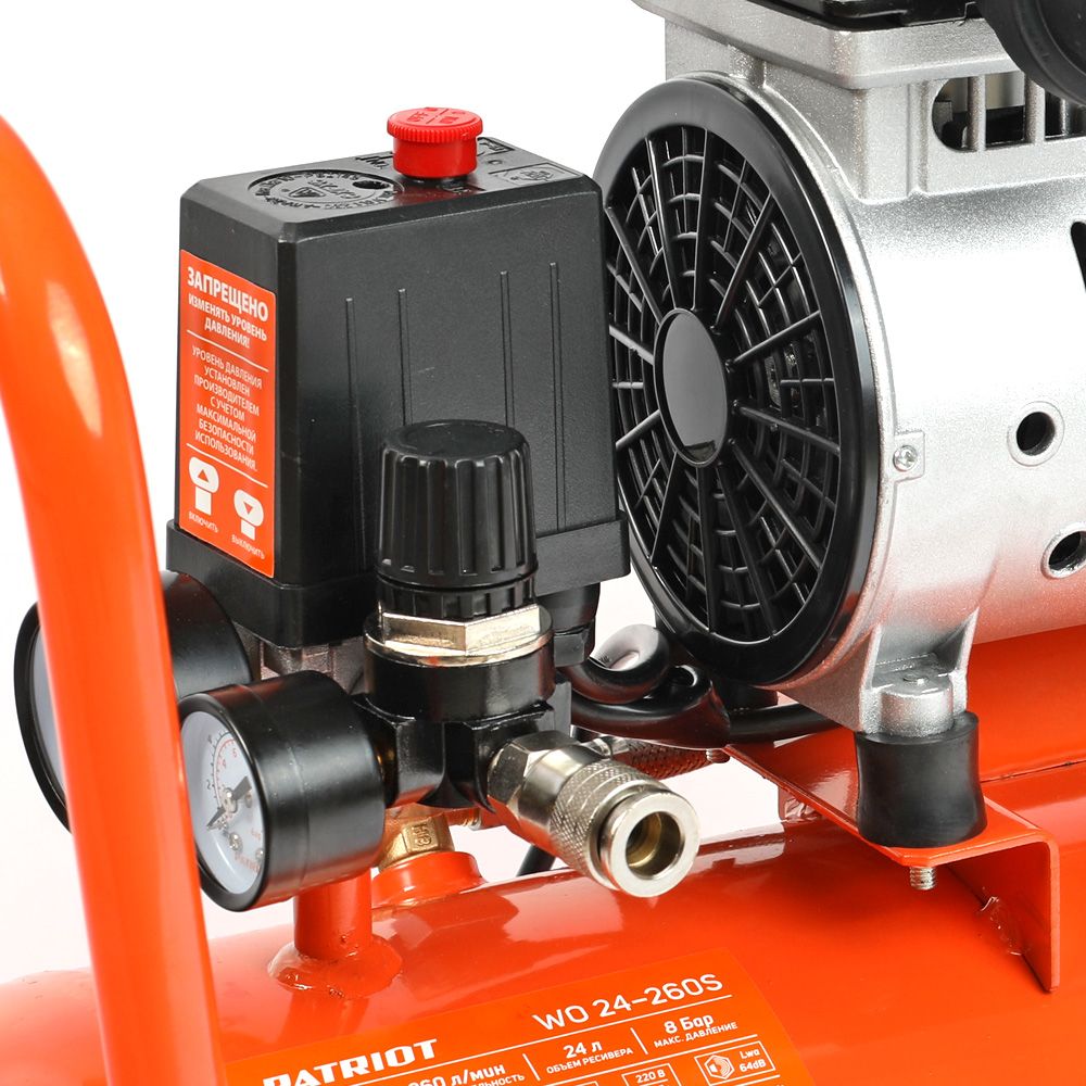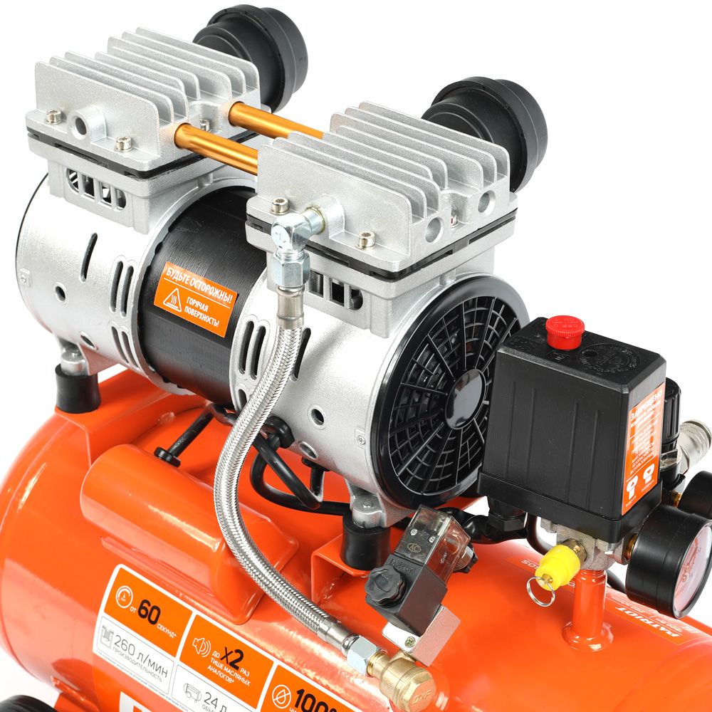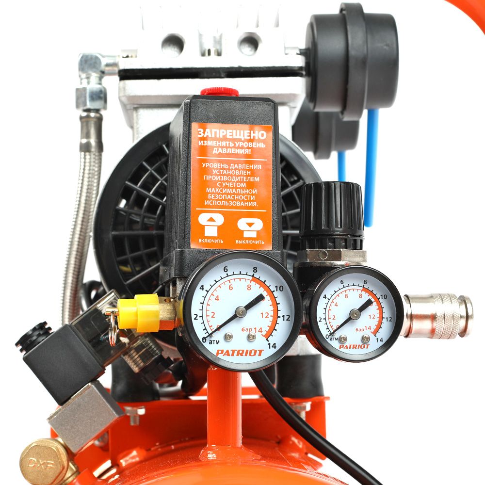 - регулировка и контроль давления в ресивере и на выходе при помощи двух манометров;