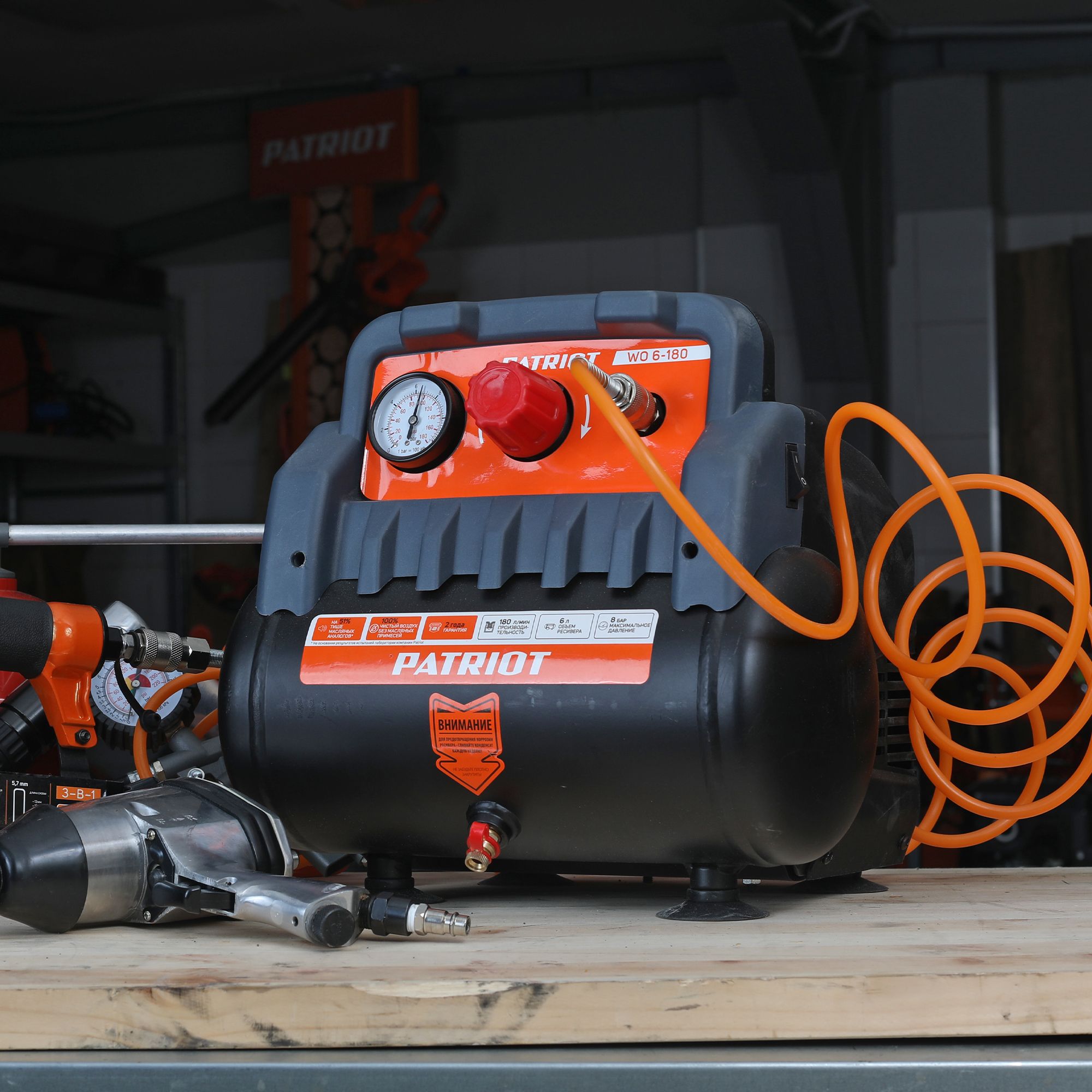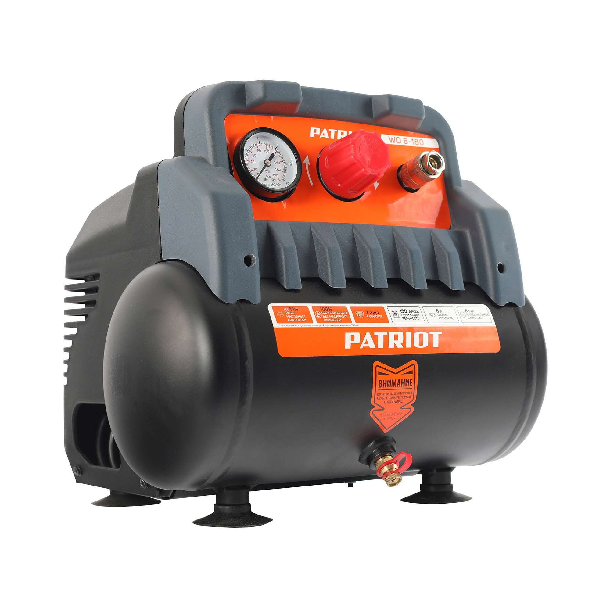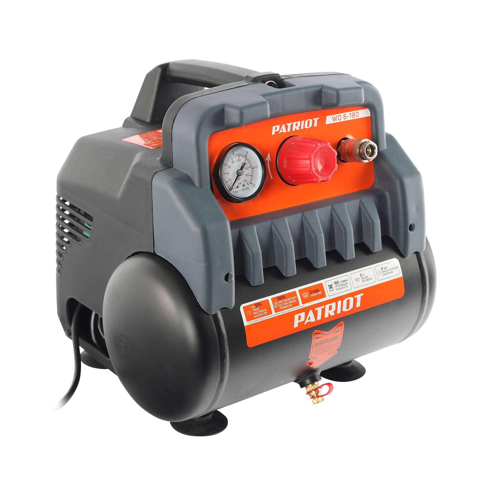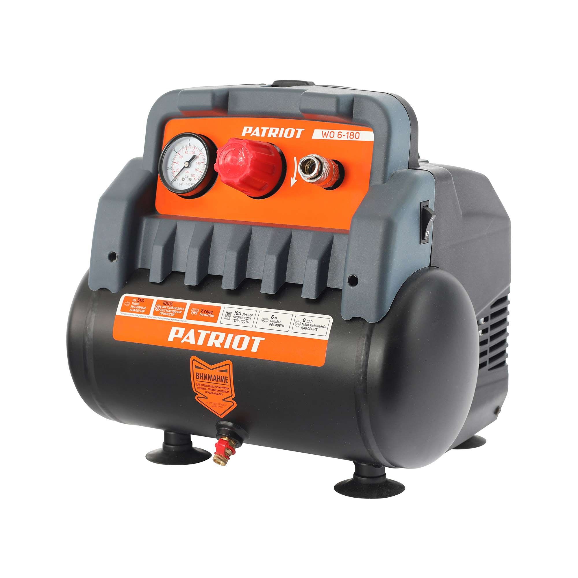 WO 6-180 – легкий компактный безмасляный поршневой компрессор, обеспечивающий пневмоинструмент чистым воздухом.