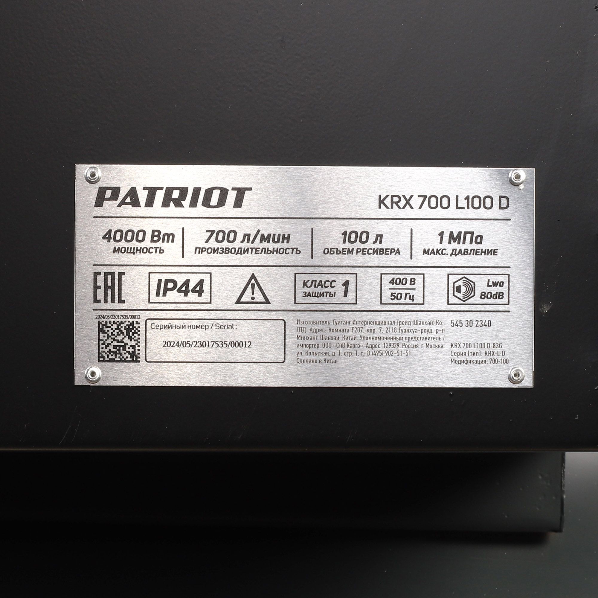 Производительности 700 л/мин (42 м3/ч) достаточно для пескоструйных, монтажных и строительных работ. Быстросъемный штуцер (¼") и кран с вентилем для подключения пневмоинструмента. Объем ресивера — 100 л.