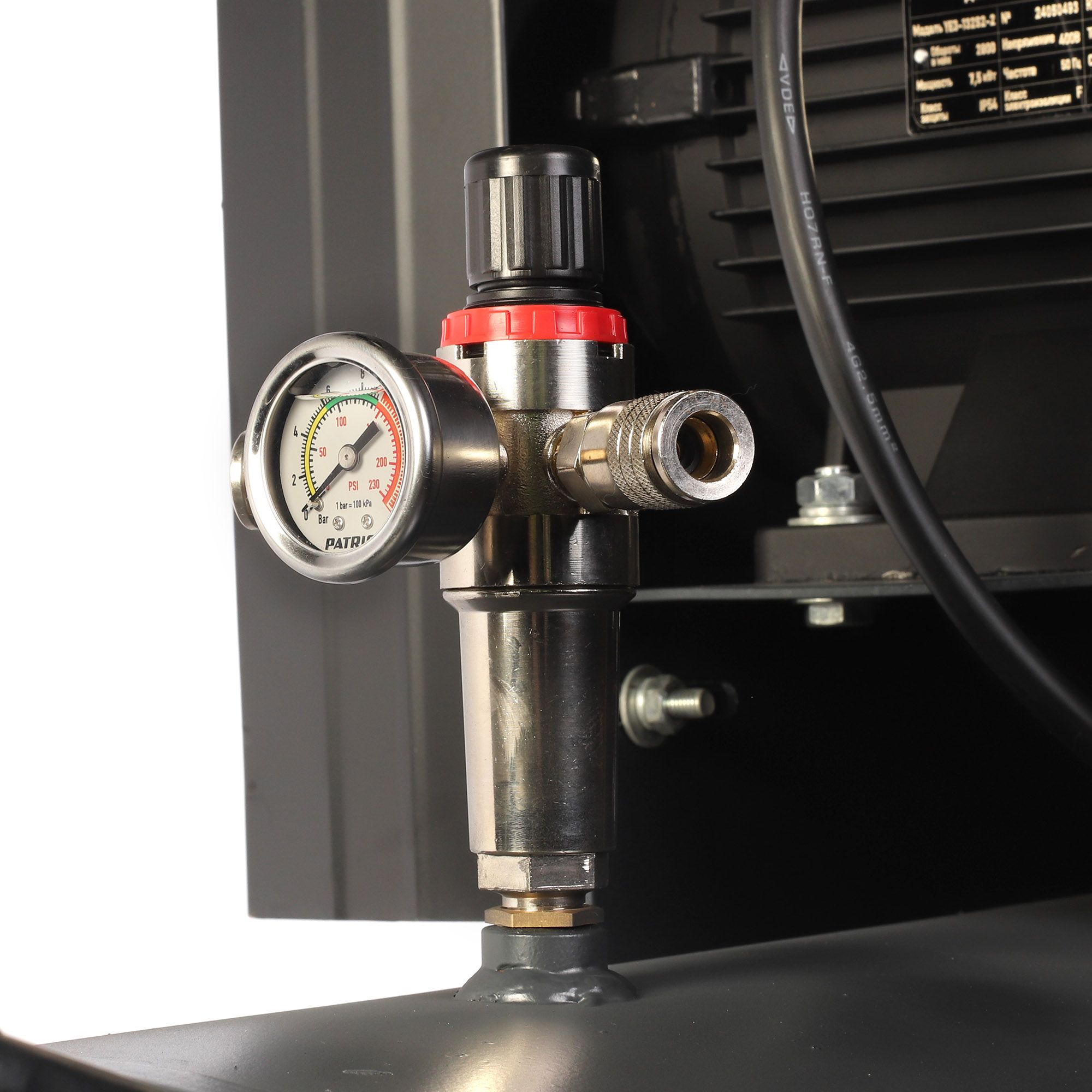 Производительности 950 л/мин (57 м3/ч) достаточно для пескоструйных, монтажных и строительных работ. Быстросъемный штуцер (¼") и кран с вентилем для подключения пневмоинструмента. Объем ресивера — 500 л.