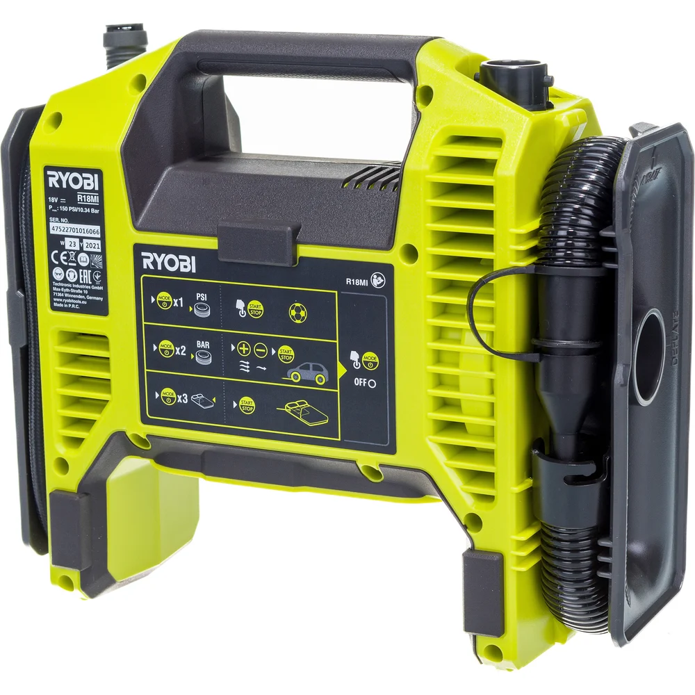 Компрессор Ryobi ONE+ R18MI-0 5133004714 - незаменим в дороге. Данная модель работает автономно и не требует подключения к источнику питания. В зависимости от потребностей пользователя можно подобрать аккумулятор соответствующей мощности. Аппарат имеет два режима подачи воздуха. В зависимости от цели использования предоставлен выбор между высоким давлением для накачки шин и большим объемом для прочих надувных изделий.