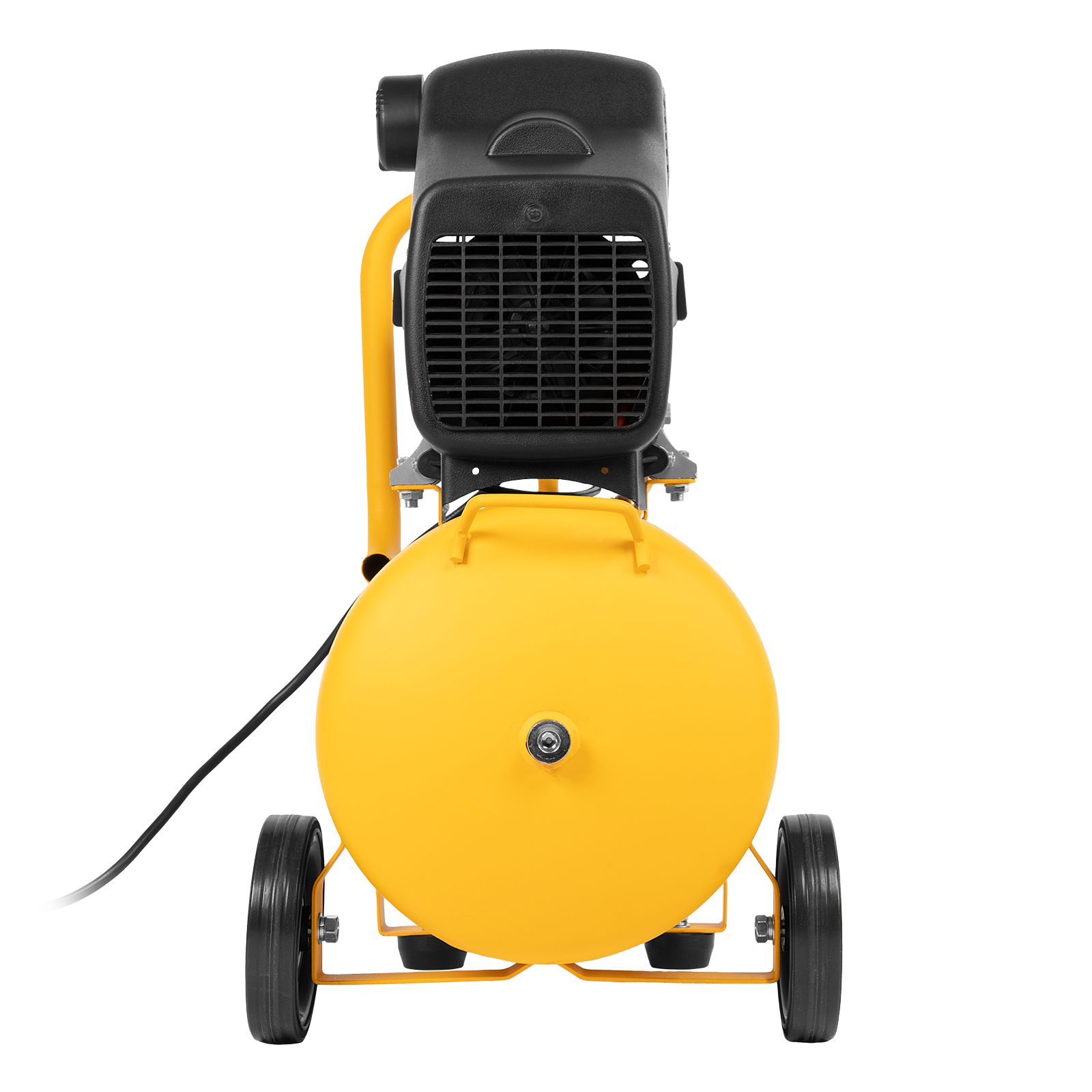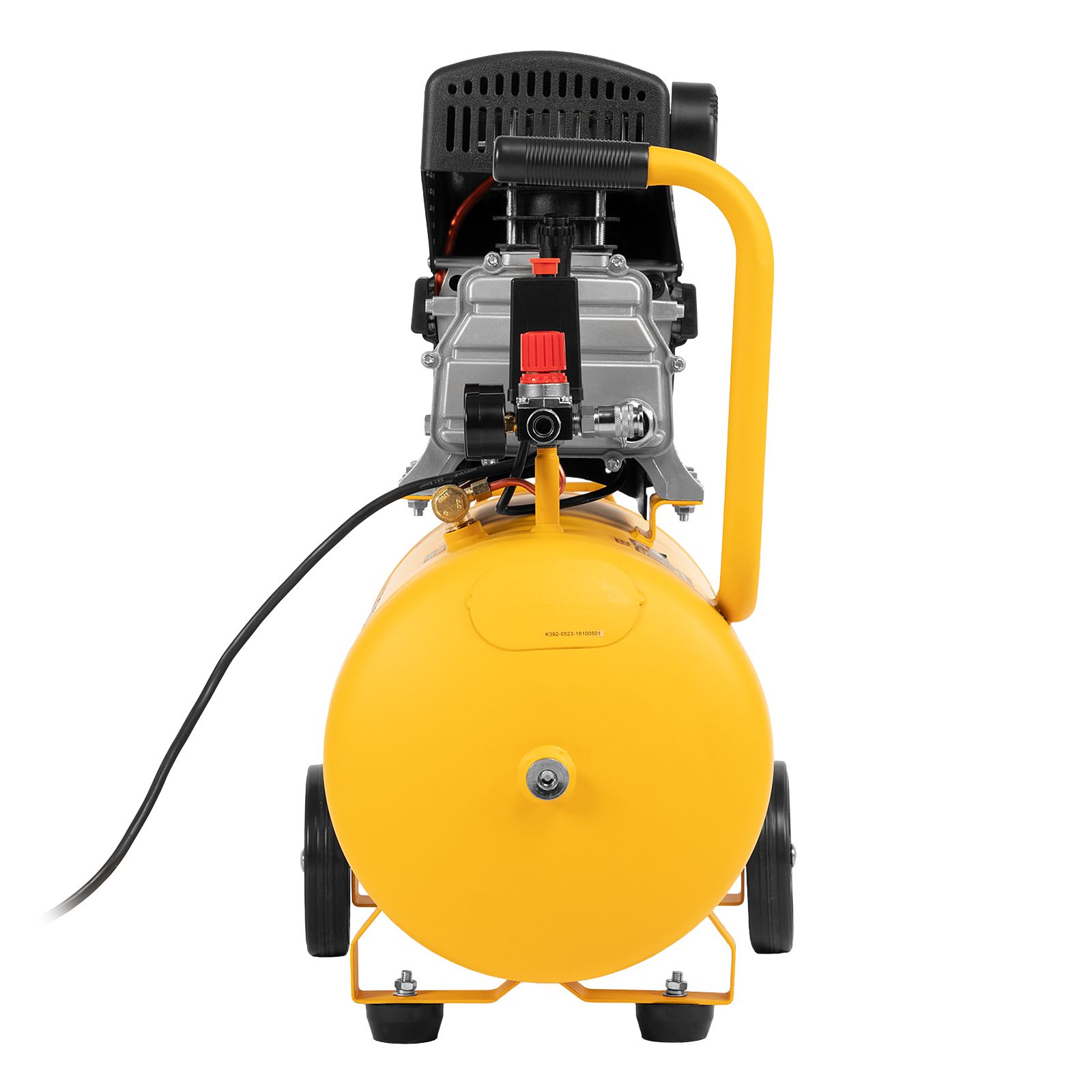 - Мобильность — ручка и колеса облегчают перемещение компрессора по рабочей площадке.