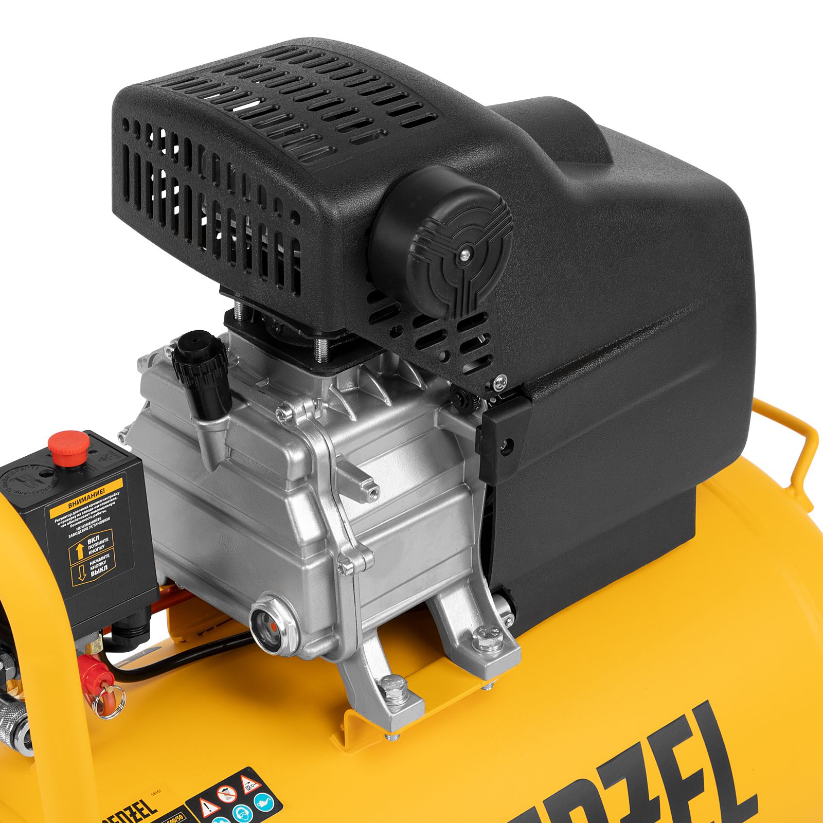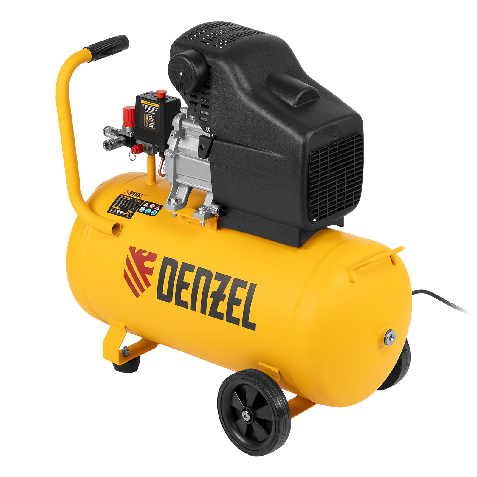 Воздушный компрессор с прямым приводом Denzel DC1500/50 58161 мощностью 1,5 кВт и производительностью 220 л/мин, с объемом ресивера 50 л, используется для подачи сжатого воздуха к пневмоинструменту, например, пневмогайковерту, пневмодрели, пневмостеплеру, пневмозубилу. Благодаря использованию смазочного масла, которое снижает износ деталей, компрессор выдерживает длительную работу и подходит для профессионального применения в автомастерской, гараже или на строительной площадке.