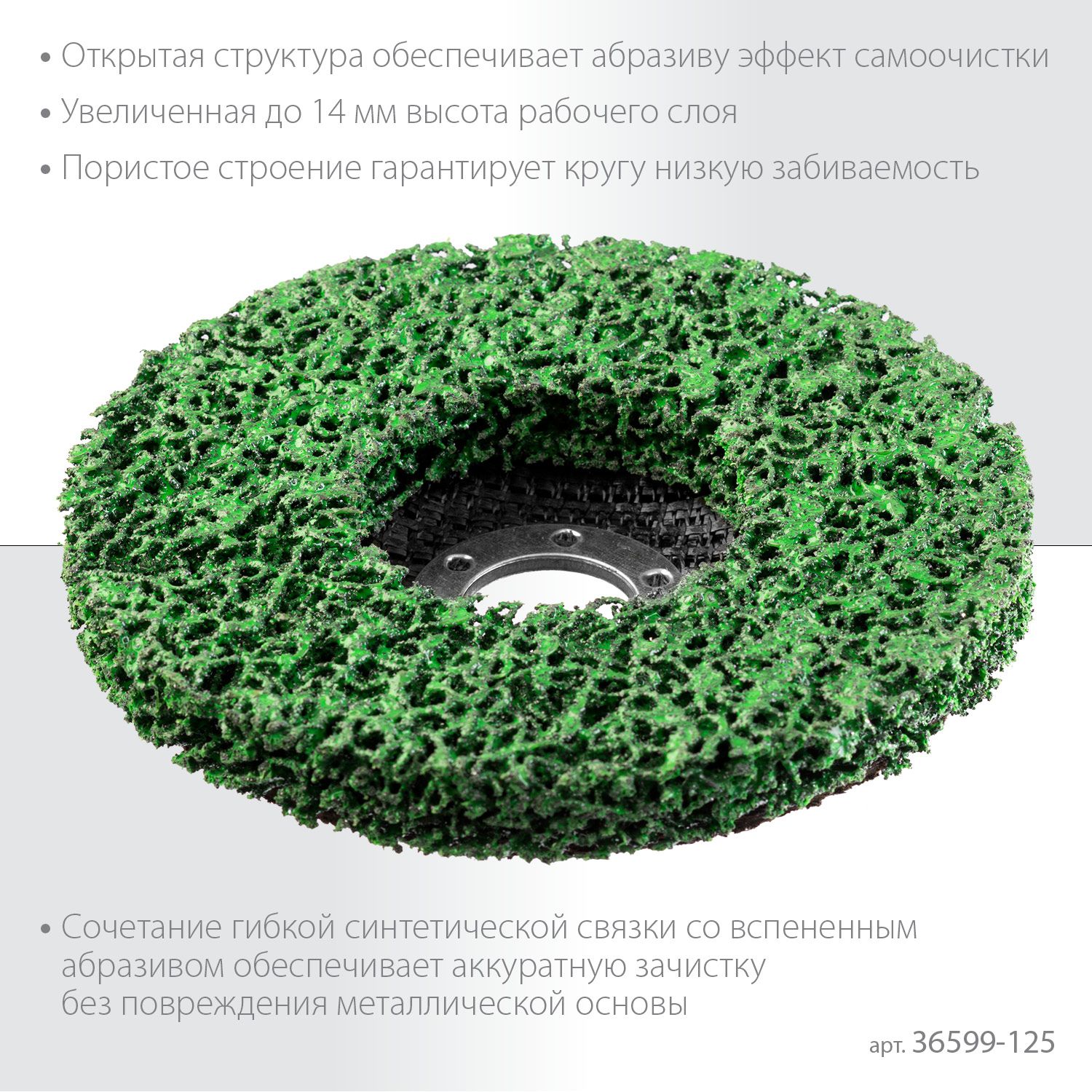 - Уникальное сочетание абразивного зерна с гибкой композитной синтетической связкой обеспечивает щадящий съем и зачистку покрытий без повреждения металлической или деревянной основы