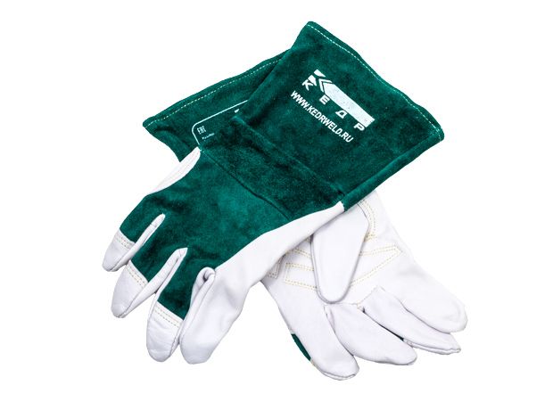 Краги сварочные КЕДP, бело-зелёные изготовлены из тонкого сафьяна для максимальной чувствительности рук. Обеспечивают максимальный комфорт и надежную защиту от брызг и ожогов.