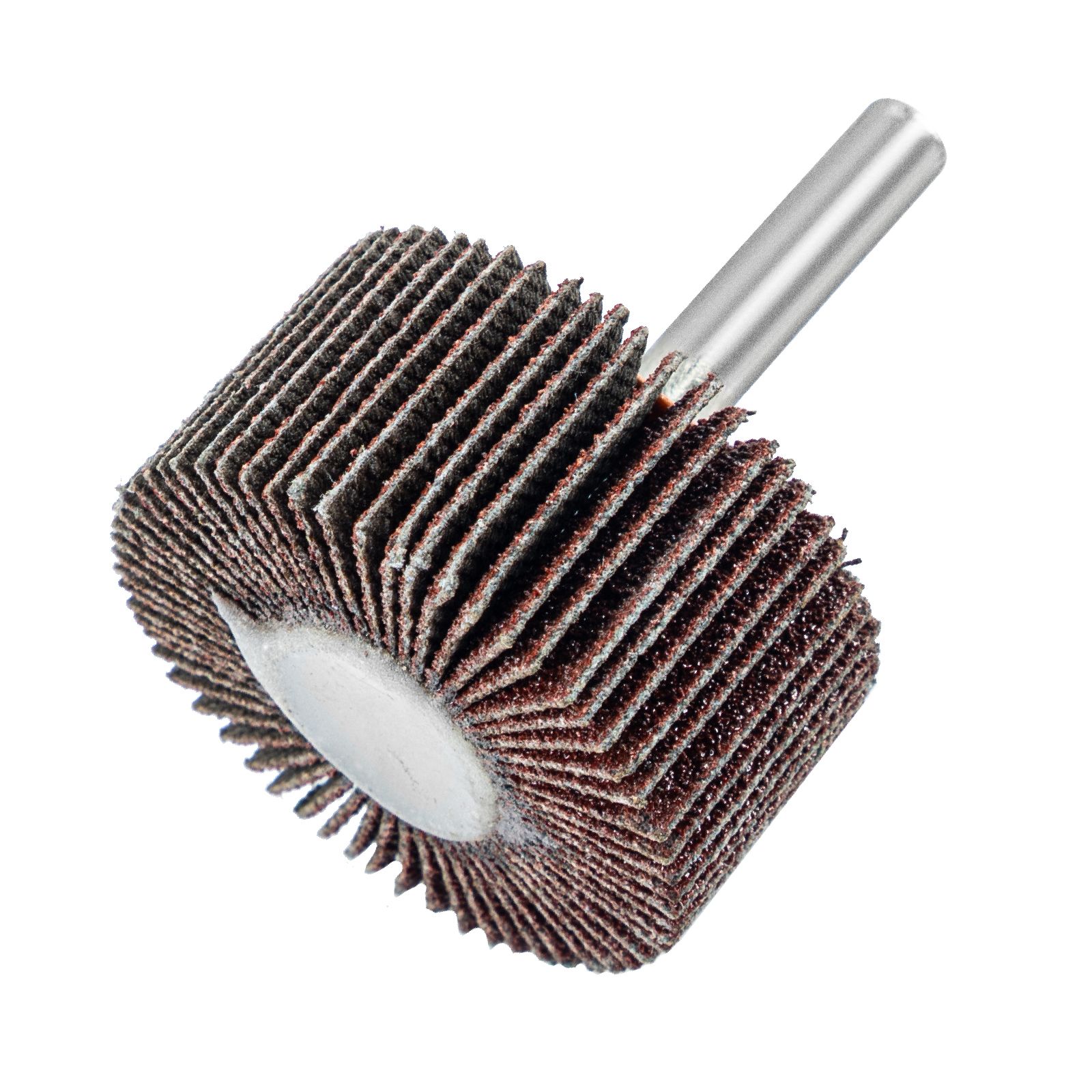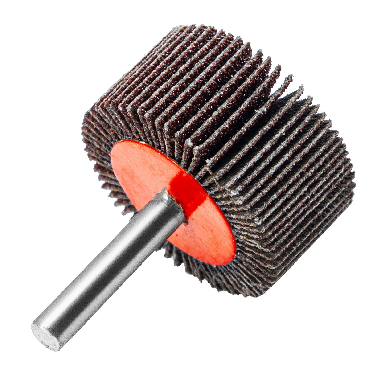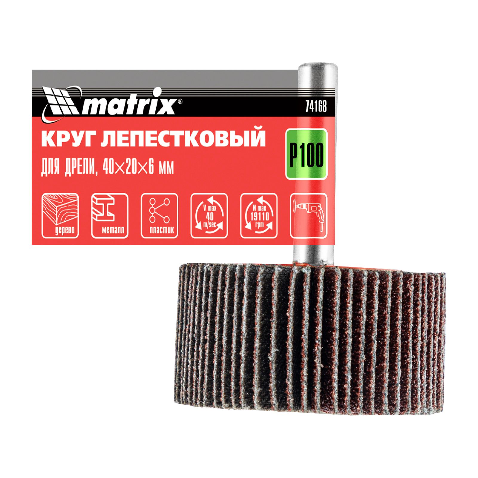Лепестковый круг Matrix 74168 размером 40 х 20 х 6 мм, с зернистостью P 100, устанавливается в патрон дрели или прямой шлифовальной машины с посадочным диаметром 6 мм и максимальной скоростью вращения 12000 об/мин. Применяется для радиальной шлифовки внутренних и наружных поверхностей. Среднезернистый абразив P 100 успешно справляется с промежуточной обработкой металла и древесины — снятием тонкого слоя лака, краски, ржавчины и заусенцев.