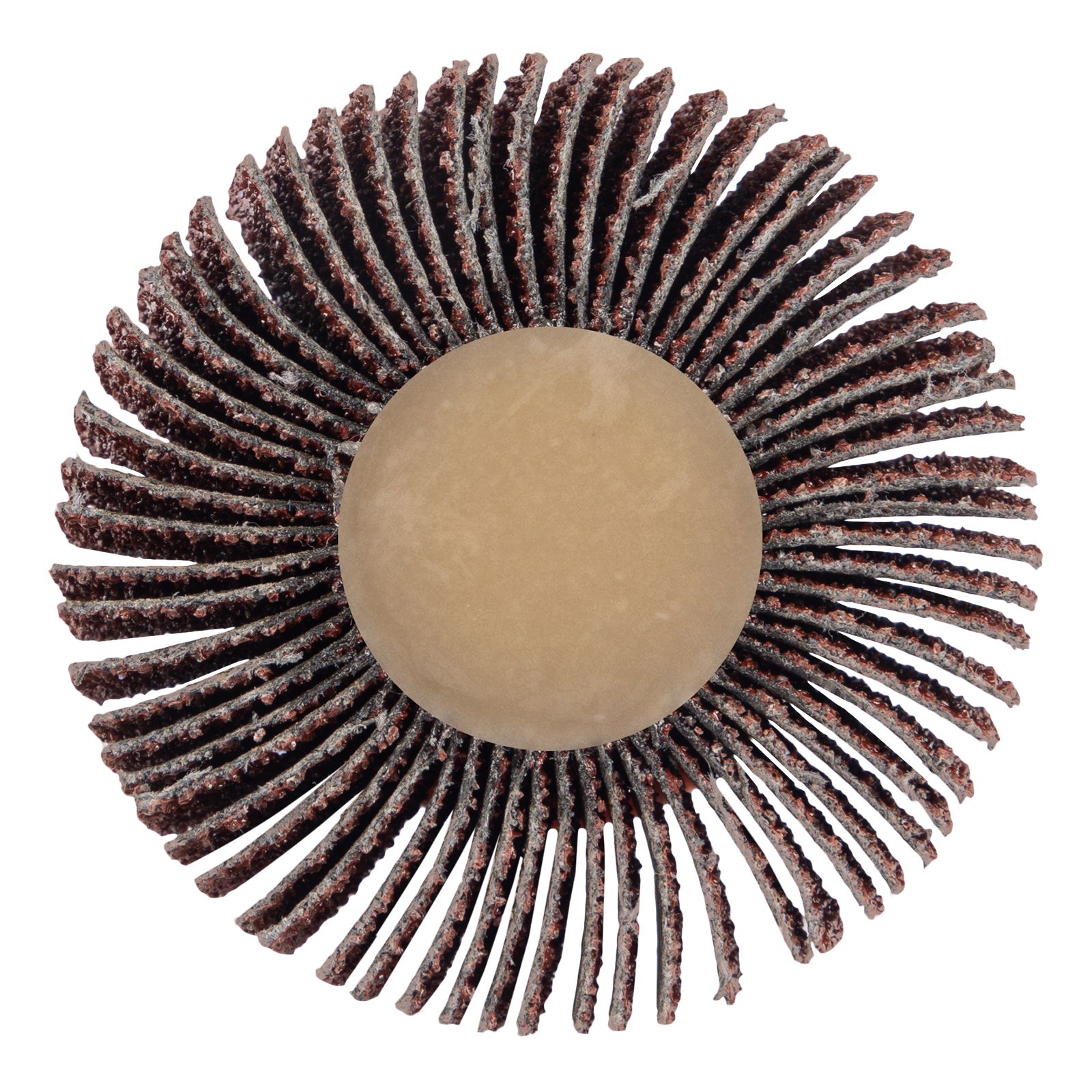 - Надежность — лепестки из прочной х/б ткани прикреплены к оправке при помощи бакелитовой смолы, поэтому круг устойчив к трению и давлению.