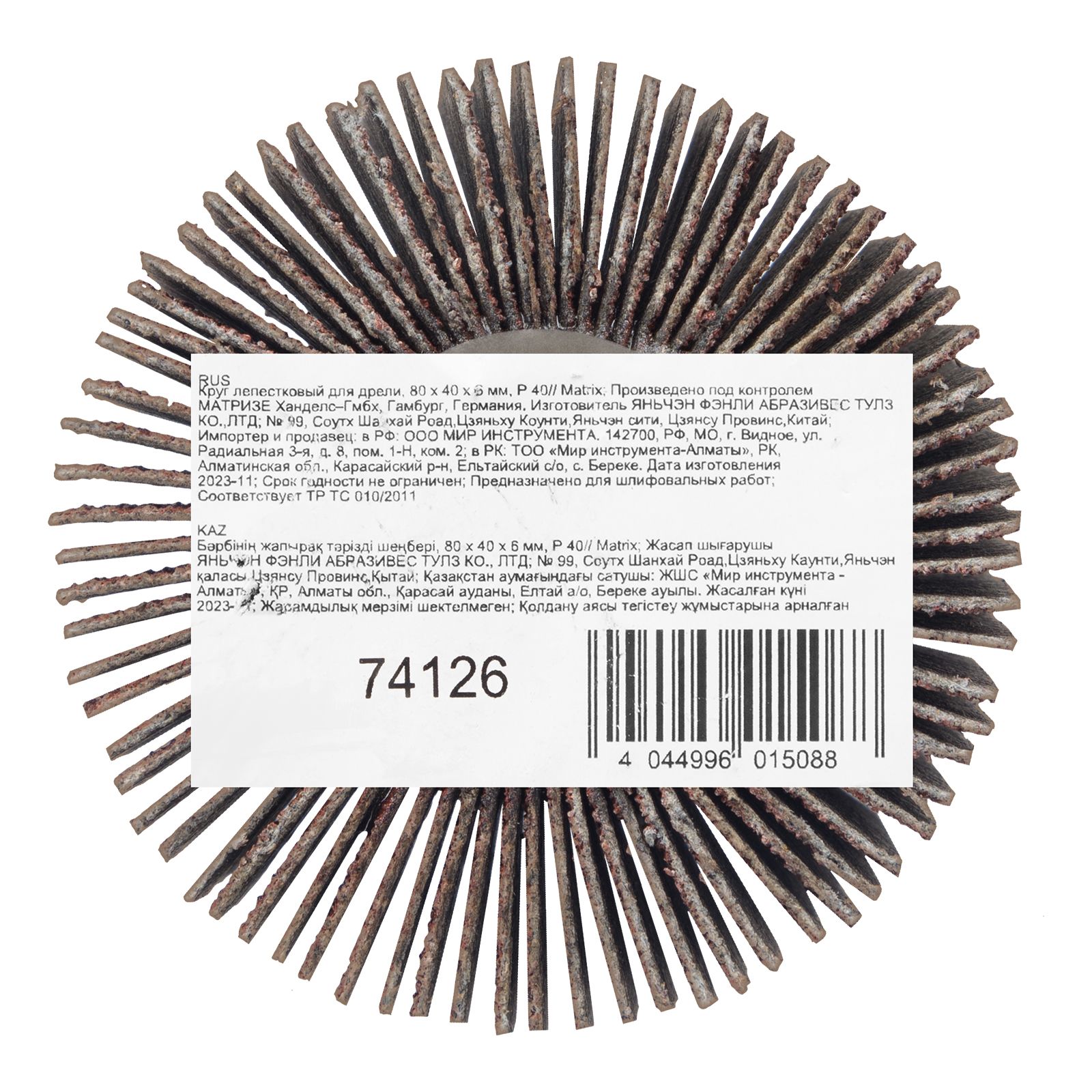 Лепестковый круг для дрели Matrix 74126 размером 60 х 30 х 6 мм, с зернистостью P 120, предназначен для чистовой шлифовки внутренних и наружных поверхностей из древесины, металла и других материалов. Совместим с дрелями и прямыми шлифовальными машинами с максимальной скоростью вращения 8000 об/мин. Фиксируется в патроне инструмента при помощи хвостовика диаметром 6 мм. Среднезернистый абразив P 120 оптимален для чистовой обработки и позволяет снимать тонкий слой краски или ржавчины, удалять мелкие заусенцы, готовить поверхность под покраску.