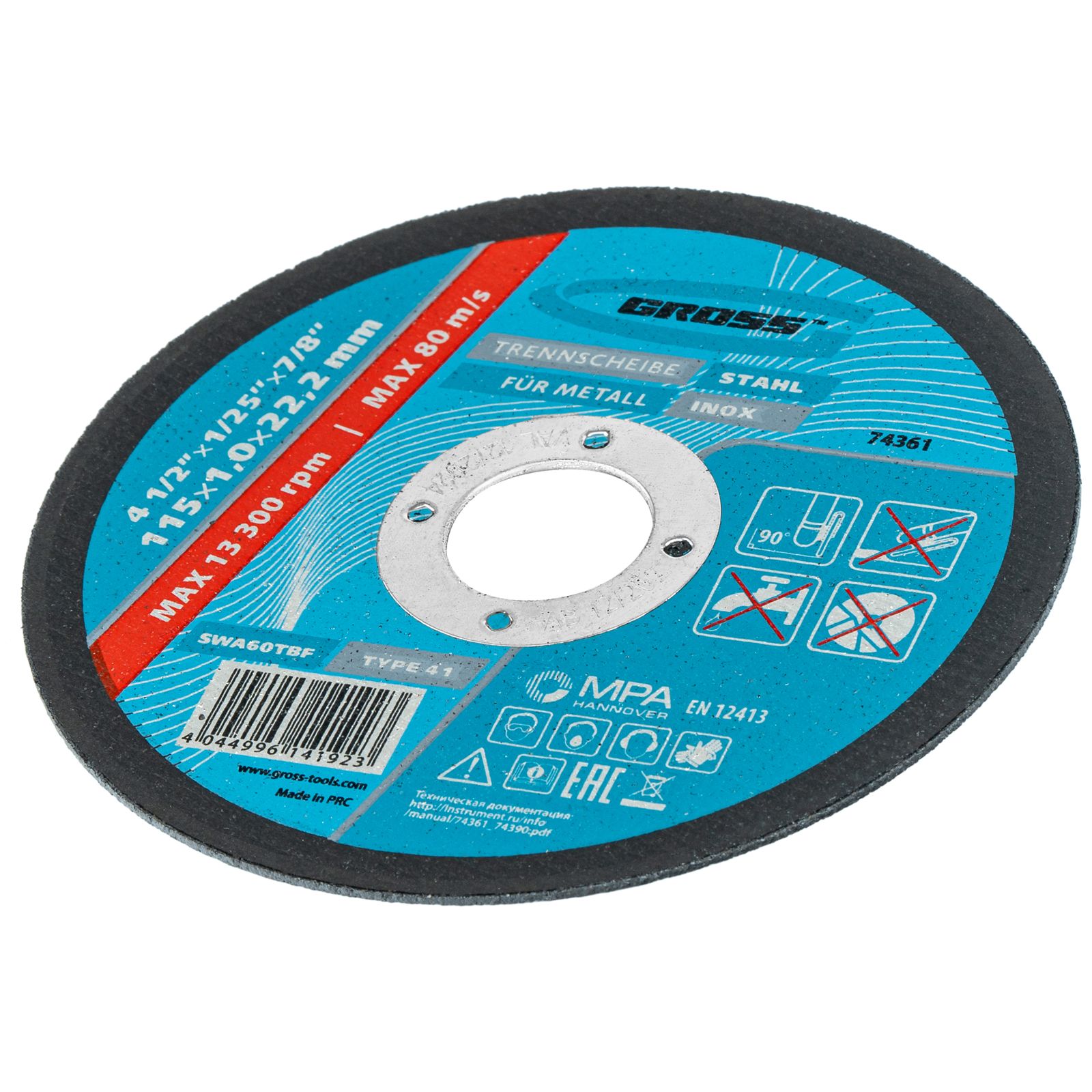 Отрезной круг по металлу Gross SWA60TBF 74361 размером 115 х 1,0 х 22,2 мм рассчитан на интенсивный сухой рез углеродистых и нержавеющих легированных сталей, алюминия, чугуна. Устанавливается на УШМ соответствующего типоразмера и не требует частой замены, подходит для профессиональной эксплуатации с высокими нагрузками.