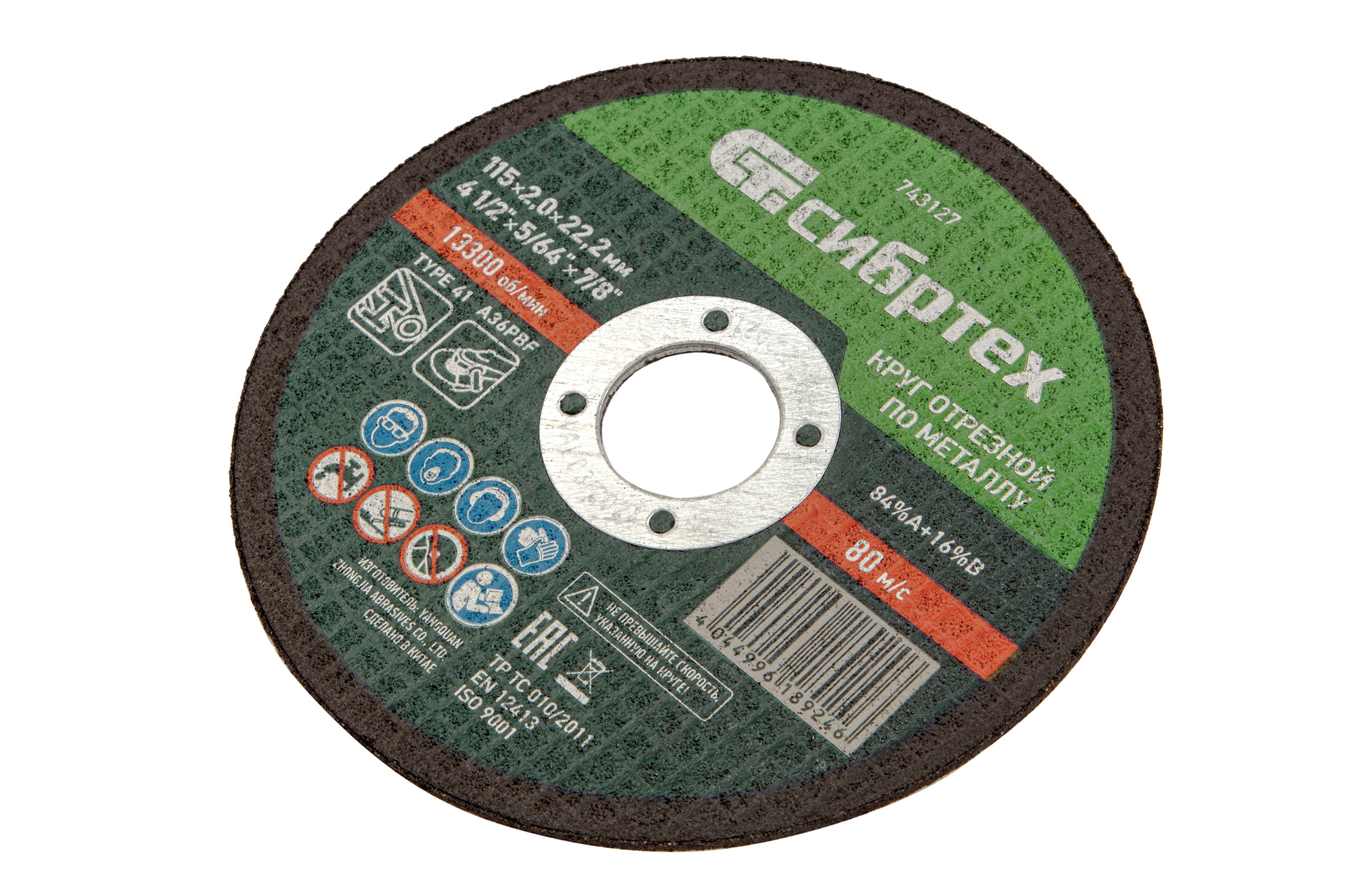 Отрезной круг по металлу Сибртех 84%A+16%B 743127 размером 115 х 2,0 мм устанавливается на УШМ с посадочным размером 22,2 мм. Предназначен для сухой резки углеродистых сталей. Круг пригодится частному мастеру для проведения ремонтных работ дома или в гараже.