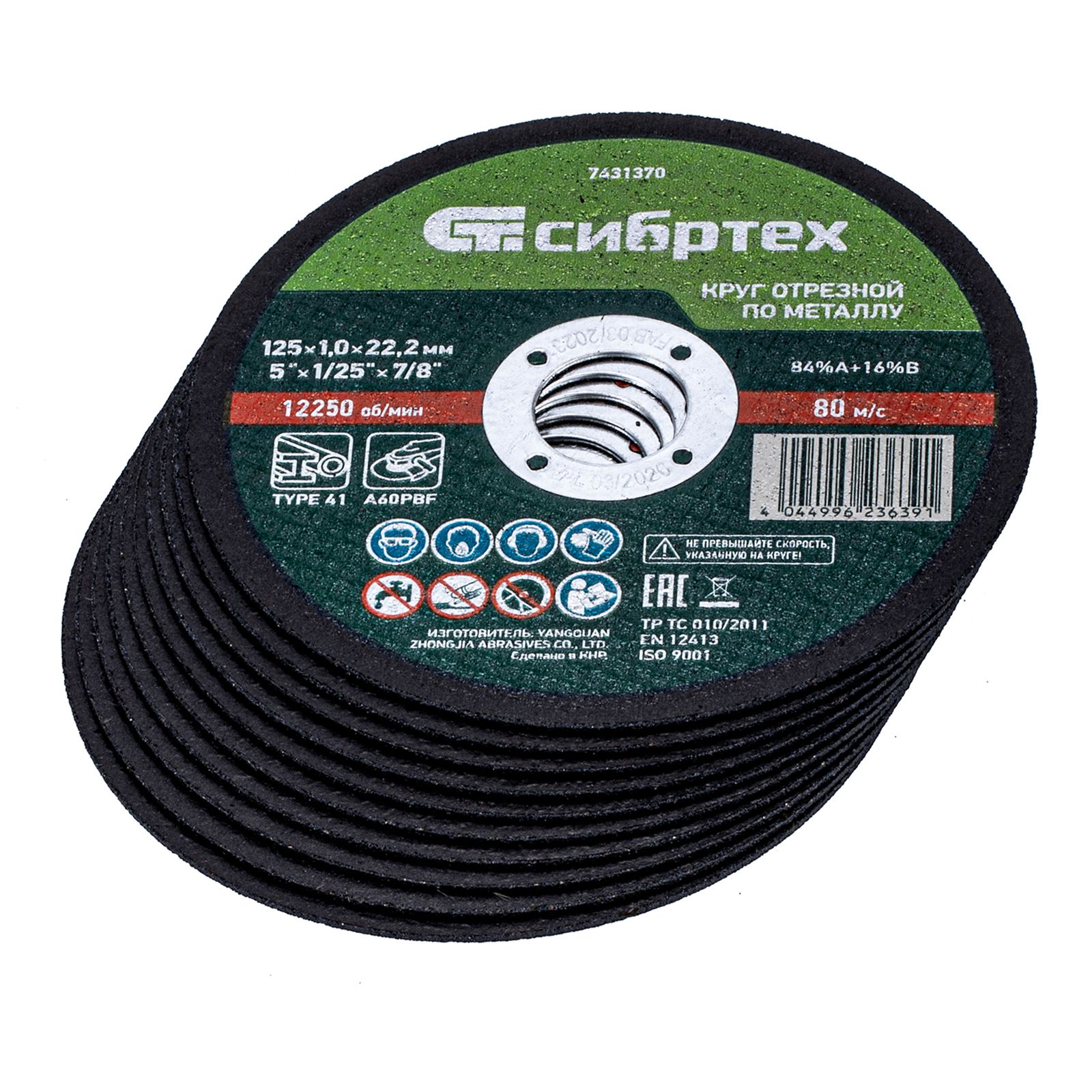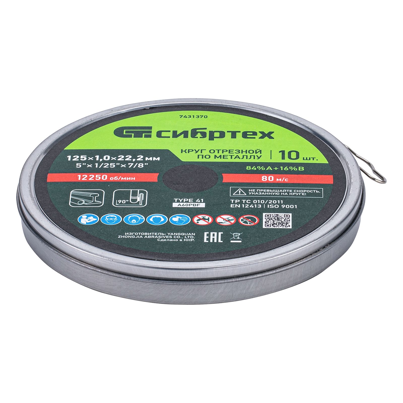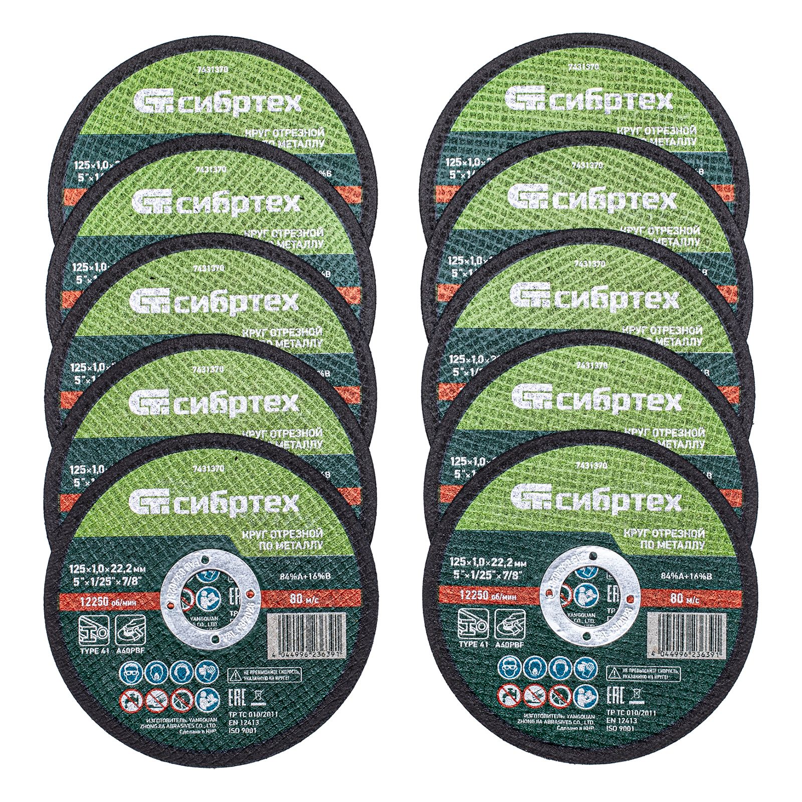 Круг отрезной по металлу Сибртех 84%A+16%B 7431370 диаметром 125 мм и толщиной 1,0 мм, 10 шт. в металлической банке, устанавливается на УШМ с посадочным размером 22,2 мм. Предназначен для сухой резки углеродистых сталей. Набор пригодится частному мастеру для проведения ремонтных работ дома или в гараже, также подойдет для профессионального применения.