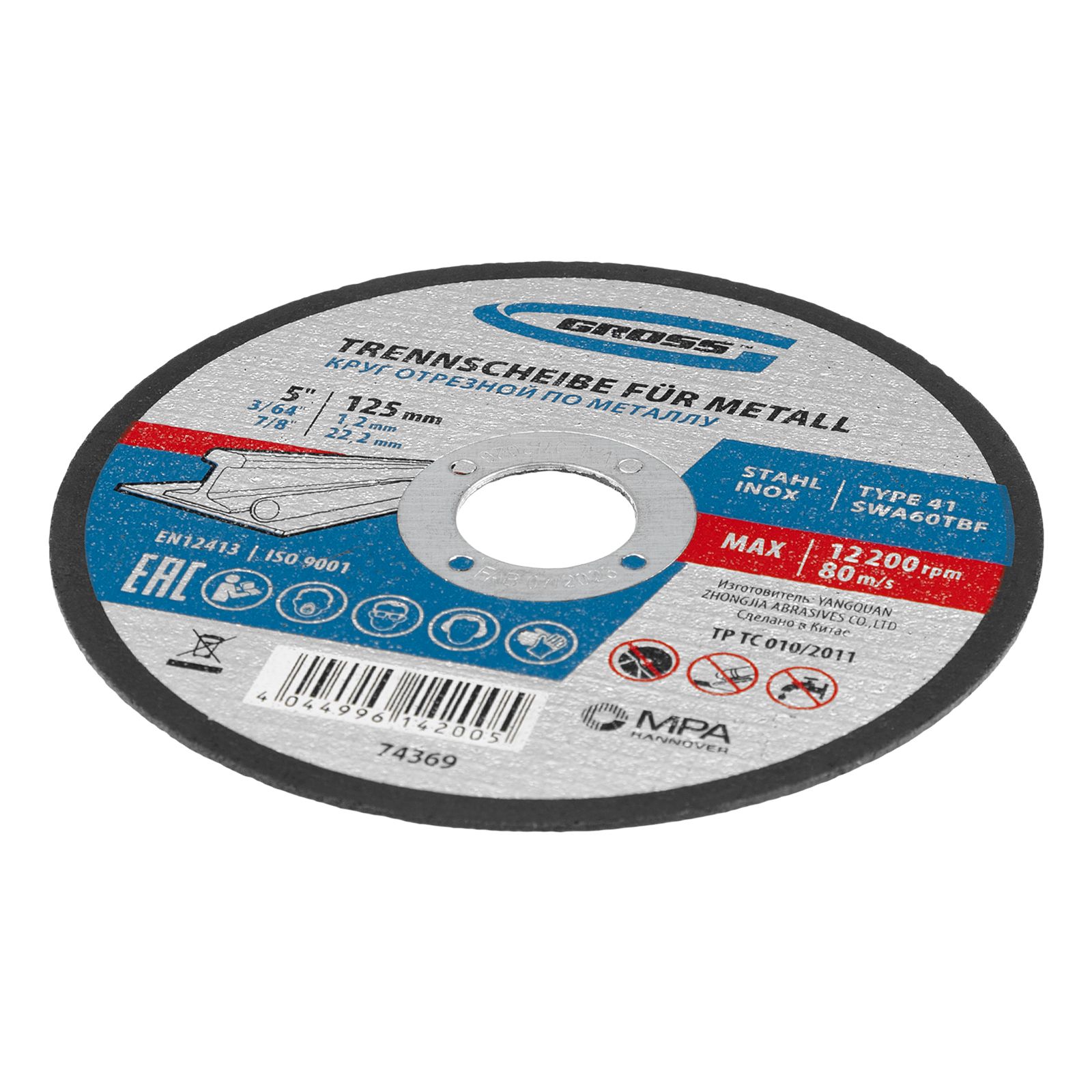 Отрезной круг по металлу Gross SWA60TBF 74369 размером 125 х 1,2 х 22,2 мм рассчитан на интенсивный сухой рез углеродистых и нержавеющих легированных сталей, алюминия, чугуна. Устанавливается на УШМ соответствующего типоразмера и не требует частой замены, подходит для профессиональной эксплуатации с высокими нагрузками.
