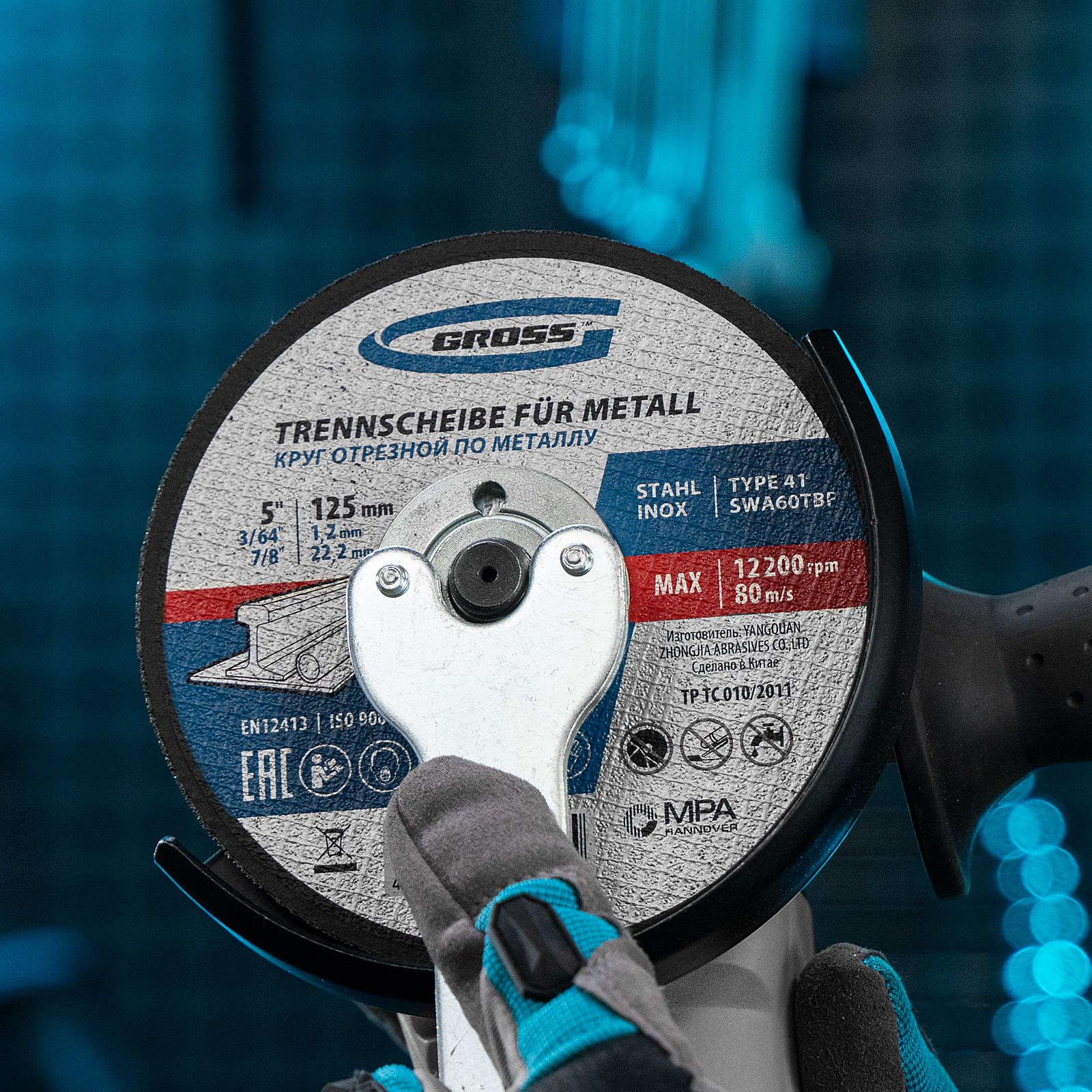 - Толщина 1,2 мм и крупный абразив F60 — круг обеспечивает высокую скорость и точность реза.