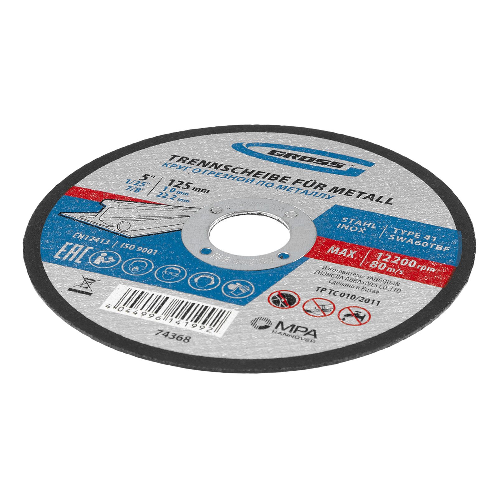 Отрезной круг по металлу Gross SWA60TBF 74368 размером 125 х 1,0 х 22,2 мм рассчитан на интенсивный сухой рез углеродистых и нержавеющих легированных сталей, алюминия, чугуна. Устанавливается на УШМ соответствующего типоразмера и не требует частой замены, подходит для профессиональной эксплуатации с высокими нагрузками.