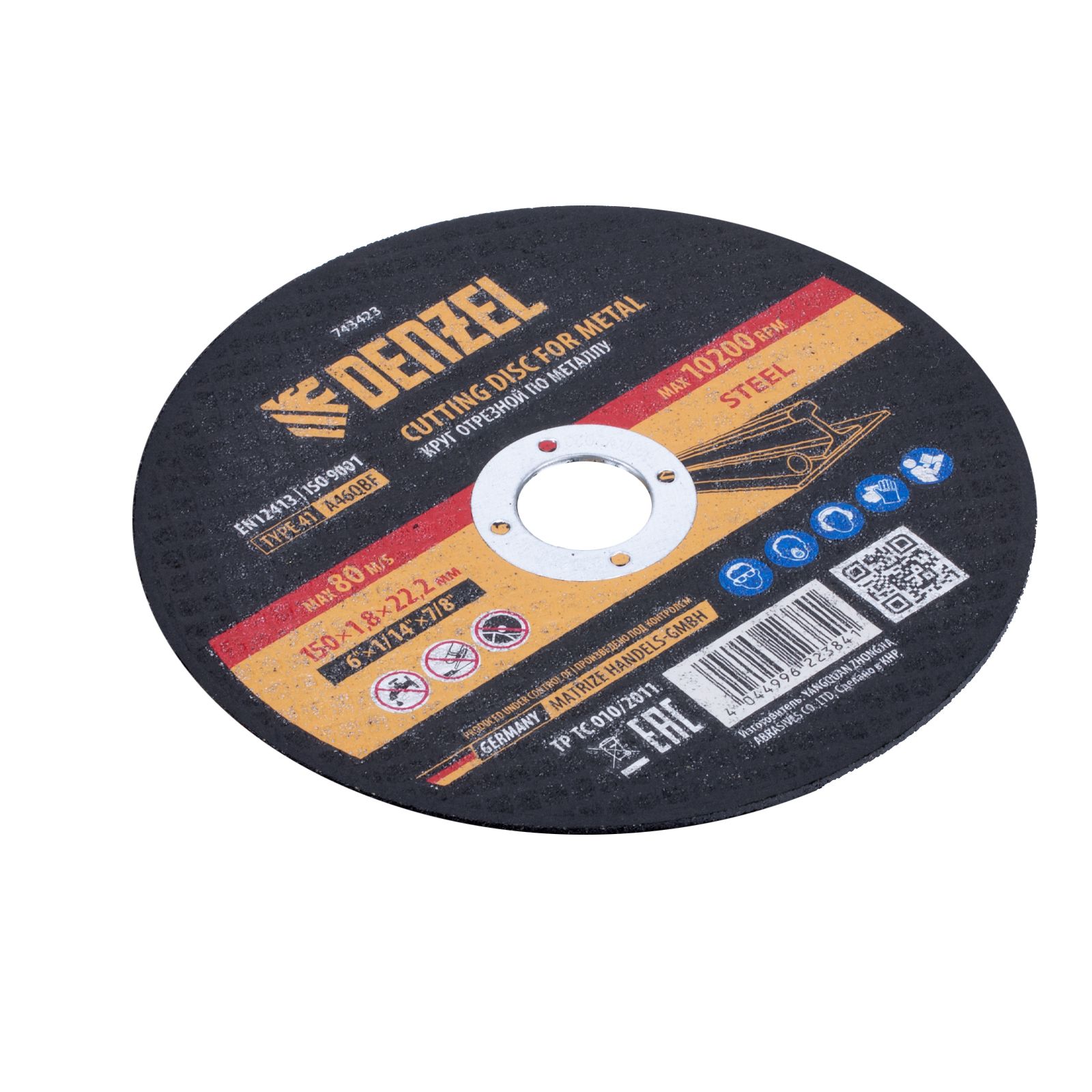 Круг отрезной по металлу Denzel 743423 (A46QBF) размером 150 х 1,8 х 22,2 мм оптимально подходит для реза углеродистых сталей. Используется на УШМ с посадочным диаметром 22,2 мм. Круг рассчитан на профессиональное и бытовое использование, сухой рез.
