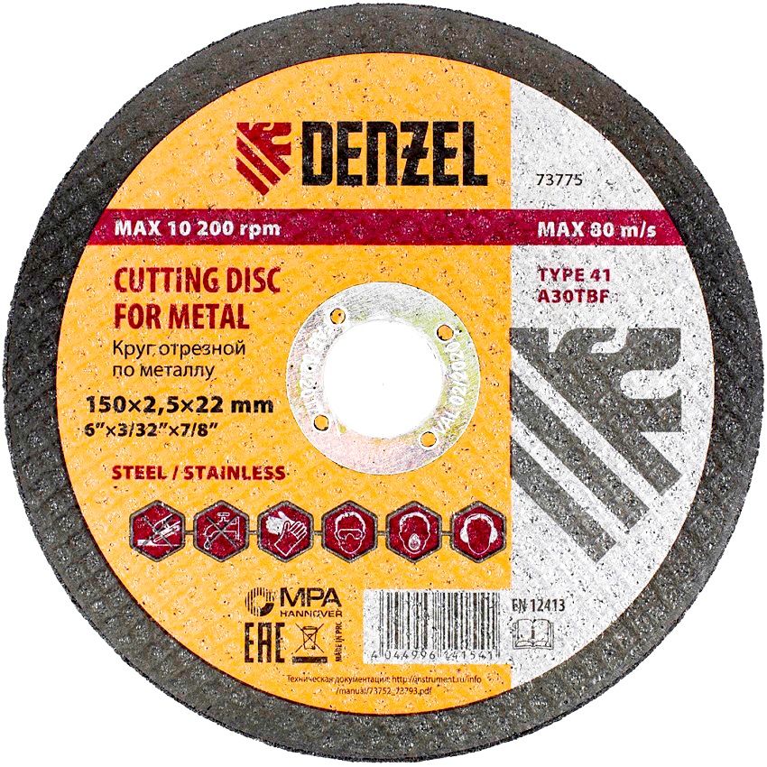 Отрезной круг по металлу Denzel A30TBF 73775 размером 150 х 2,5 х 22,2 мм рассчитан на интенсивную работу с УШМ. Подходит для резки углеродистой и нержавеющей легированной стали. Круг можно использовать не только в быту, но и для решения профессиональных задач.