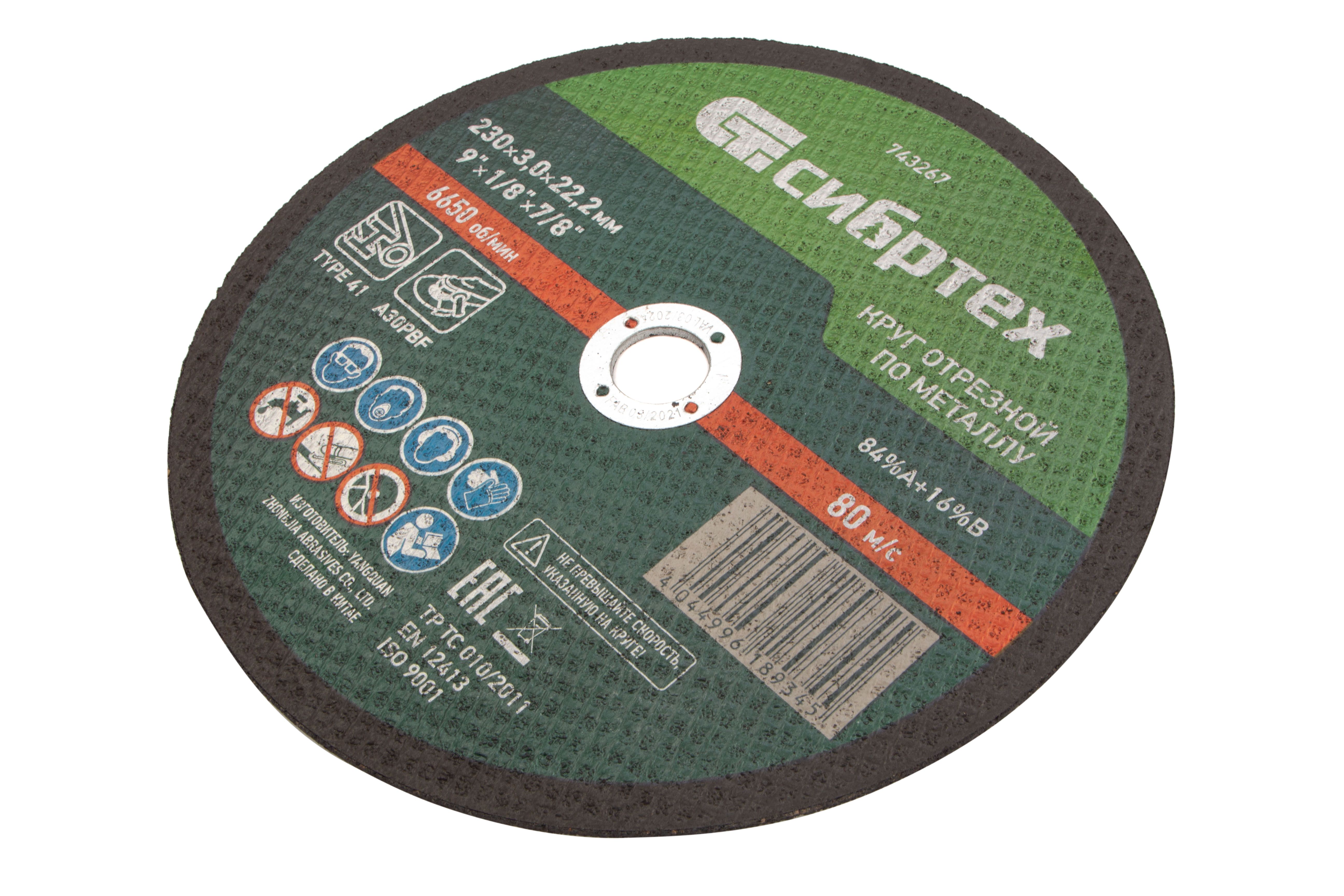 Отрезной круг по металлу Сибртех 84%A+16%B 743267 размером 230 х 3,0 мм устанавливается на УШМ с посадочным размером 22,2 мм. Предназначен для сухой резки углеродистых сталей. Круг пригодится частному мастеру для проведения ремонтных работ дома или в гараже.