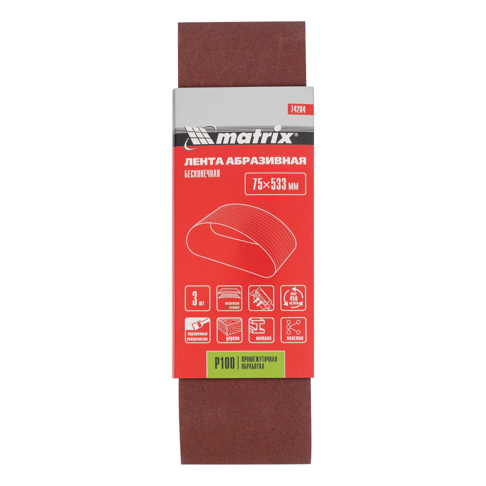 Абразивная лента Matrix 74284 зернистостью P 100 поставляется в наборе из 3 шт. и используется на ленточных шлифовальных машинах, совместимых со сменными элементами размером 75 х 533 мм. Применяется для чистовой обработки и получения гладкой поверхности деревянных, пластиковых и металлических предметов. Подходит для снятия тонкого слоя краски, ржавчины, удаления мелких заусенцев и т.д.
