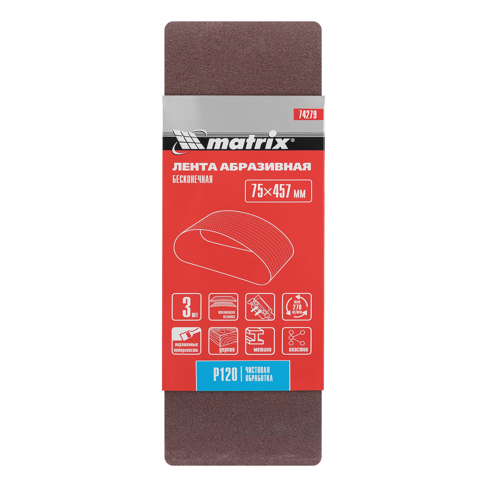 Бесконечная абразивная лента Matrix 74279 с зернистостью P 120, 3 шт. в упаковке, устанавливается на ленточную шлифовальную машину, совместимую со сменными элементами размером 75 х 457 мм. Применяется для чистовой обработки деревянных и металлических поверхностей.